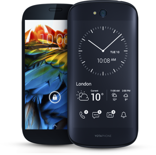 Jedným z hlavných žrútov elektrickej energie v smartfóne je displej, takže výrobcovia sa, pochopiteľne, snažili o úspornejšie riešenia. V médiách pred ôsmimi rokmi zarezonoval ruský výrobca Yota s modelom YotaPhone, ktorý mal okrem bežného displeja ešte aj sekundárny. Umiestnený bol na zadnej strane telefónu a šlo o takzvaný e-ink panel, známy z čítačiek elektronických kníh, ktorý na svoje fungovanie potrebuje iba minimum energie.