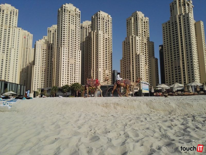 Pláž Jumeirah, ťavy a mrakodrapy