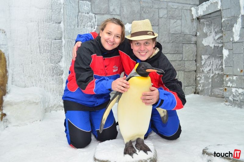 12. Pokiaľ chcete zážitok s tučniakmi (tými zvieratami), zaplatíte 150 chechtákov za vstup (37,5 EUR). Okrem toho si musíte prenajať skrinku za 25 chechtákov (6 EUR) – či chcete alebo nie. Keď už dôjde k samotnému stretnutiu, tučniaka môžete chytiť, pohladkať a dokonca aj pobozkať! Všetko za neutíchajúceho cvakania fotoaparátu. Parkrát vás teta vyzve, aby ste sa pozreli do objektívu. Dáte úsmev číslo štyri a chcete sa ešte chvíľku z blízka vynadívať na to stvorenie, ktoré práve žije v krajine s priemernou vonkajšou teplotou 40 stupňov (nebojte sa, vnútri to ma dobre vychladené). Po druhom upozornení, že sa nepozeráme do objektívu zisťujeme, že sme evidentne nepochopili koncept toho všetkého. Fotku za 120 chechtákov (30 EUR) si však kúpime, veď kedy inokedy budeme mať opäť takú príležitosť. Mimochodom, všetky peniaze samozrejme, určite, na 100%, idú do nadácie na záchranu týchto tvorov. Preto ich dali tak blízko k ich prirodzenému domovu, ako to len šlo.Fotka za 30 EUR. No nekúp to 🙂