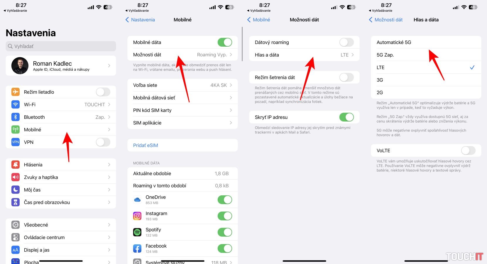 Pokiaľ používate iPhone a SIM kartu od 4ky aj vy, nainštalujte si najnovšiu verziu systému iOS (Nastavenia – Všeobecné – Aktualizácia softvéru) a v Nastavenia – Mobilné – Možnosti dát – Hlas a dáta si zvoľte možnosť Automatické 5G alebo 5G Zap.