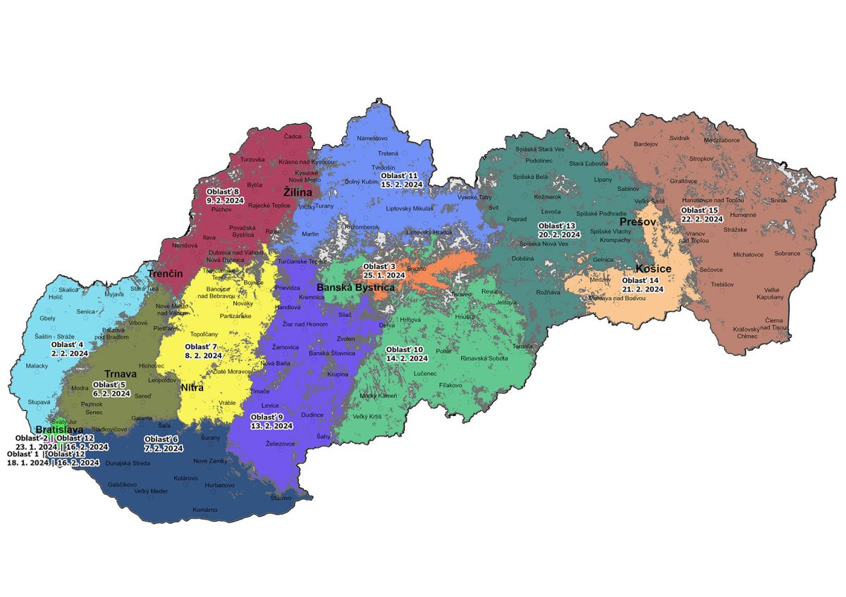 22.2.2024 | Oblasť 15 | MICHALOVCE (Michalovce, Trebišov, Humenné, Snina, Giraltovce, Vranov nad Topľou, Sobrance, Veľké Kapušany, Sečovce, Stropkov, Svidník, Bardejov, Medzilaborce, Giraltovce, Hanušovce nad Topľou) |