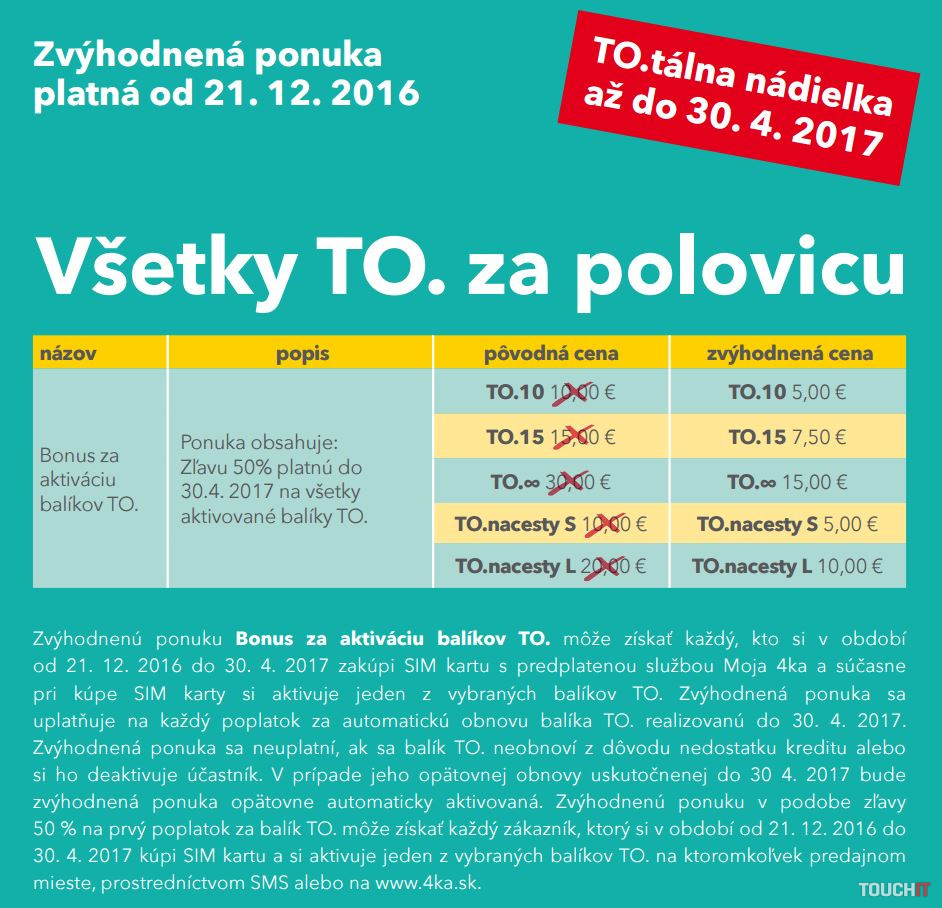 4ka takisto rozšírila ponuku 50% zľavy na balíky TO.10, TO.15, TO.nekonečno a TO.nacesty aj pre nových zákazníkov, ktorí si kúpia SIM kartu Moja 4ka.