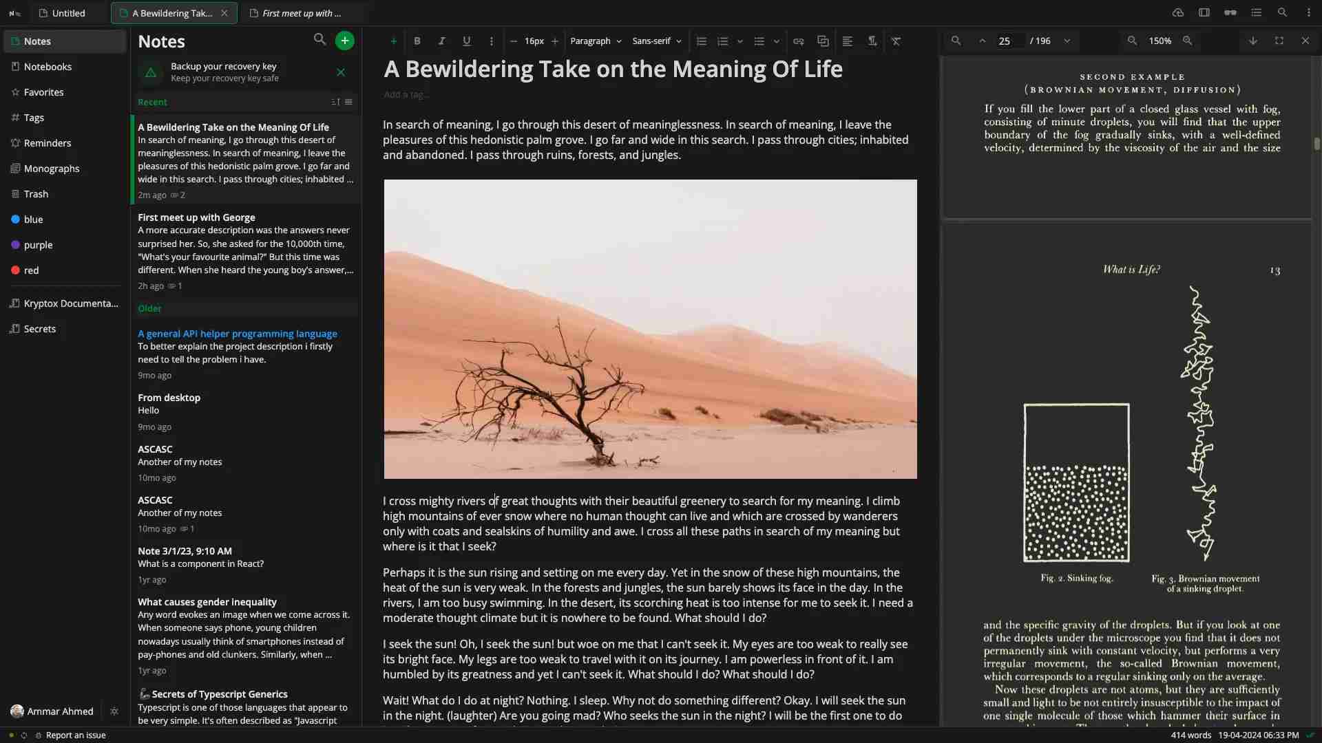 Poznámkový blok podobný Standard Notes, no so subjektívne lepším rozhraním. Je to open-source aplikácia s end-to-end šifrovanými poznámkami. Dá sa používať na webe ako aj v aplikácii pre desktopové systémy a mobilné platformy. Špecialita je ARM verzia a tiež prenosná bez potreby inštalácie.