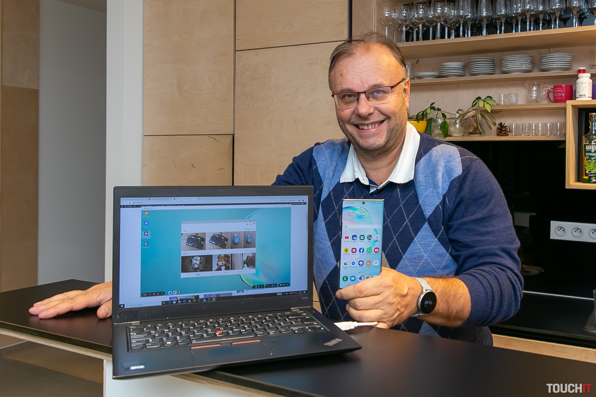 Toto je veľké zlepšenie, ktoré len tak niečo nenahradí. Samsung sa postaral o to, aby ste pomocou dodávaného kábla USB-C na USB dokázali prepojiť telefón a notebook. Na notebooku vznikne potom prostredie s ovládaním smartfónu. Má podobu operačného systému Windows a umožňuje napr. veľmi rýchlo a graficky preniesť fotografie a videá medzi smartfónom a notebookom. Ďalej viete využiť SMS-ky v mobile na tvorbu dokumentov v notebooku a naopak mechanickú klávesnicu v notebooku na prípravu dokumentov v smartfóne. DeX je jednoducho výborný systém, milujem ho. Funguje na prvé zapojenie a nič neštandardné na to netreba. DeX bol v minulosti spôsob ako spojiť smartfón s displejom a mechanickou klávesnicou. To stále funguje, ale DeX 2019 pri spojení s notebookom je lepšie spojenie a má rozumné využitie.