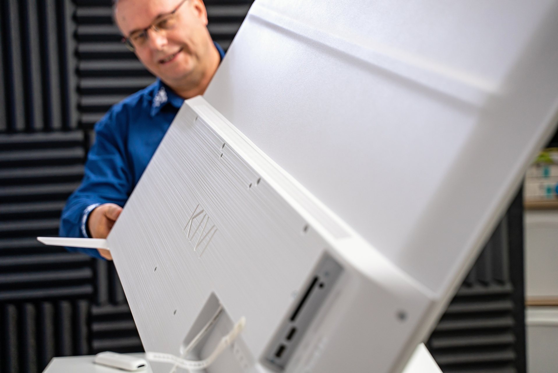 Ide o televízor s elegantným rámikom a tenkými nožičkami. Tieto sú vyhotovené z kovu a zvýrazňujú celkový minimalistický dizajn. Tenké rámiky navyše nepôsobia rušivo, na boku majú len 2,6 mm. Svojím dizajnovým poňatím zapadne televízor KIVI 55U750NW do každého interiéru. Dá sa povedať, že elegantný je od zhora až dole a jeho celková hĺbka aj s podstavcom je 26 cm. Zaujímavá je pritom aj zadná časť televízora.