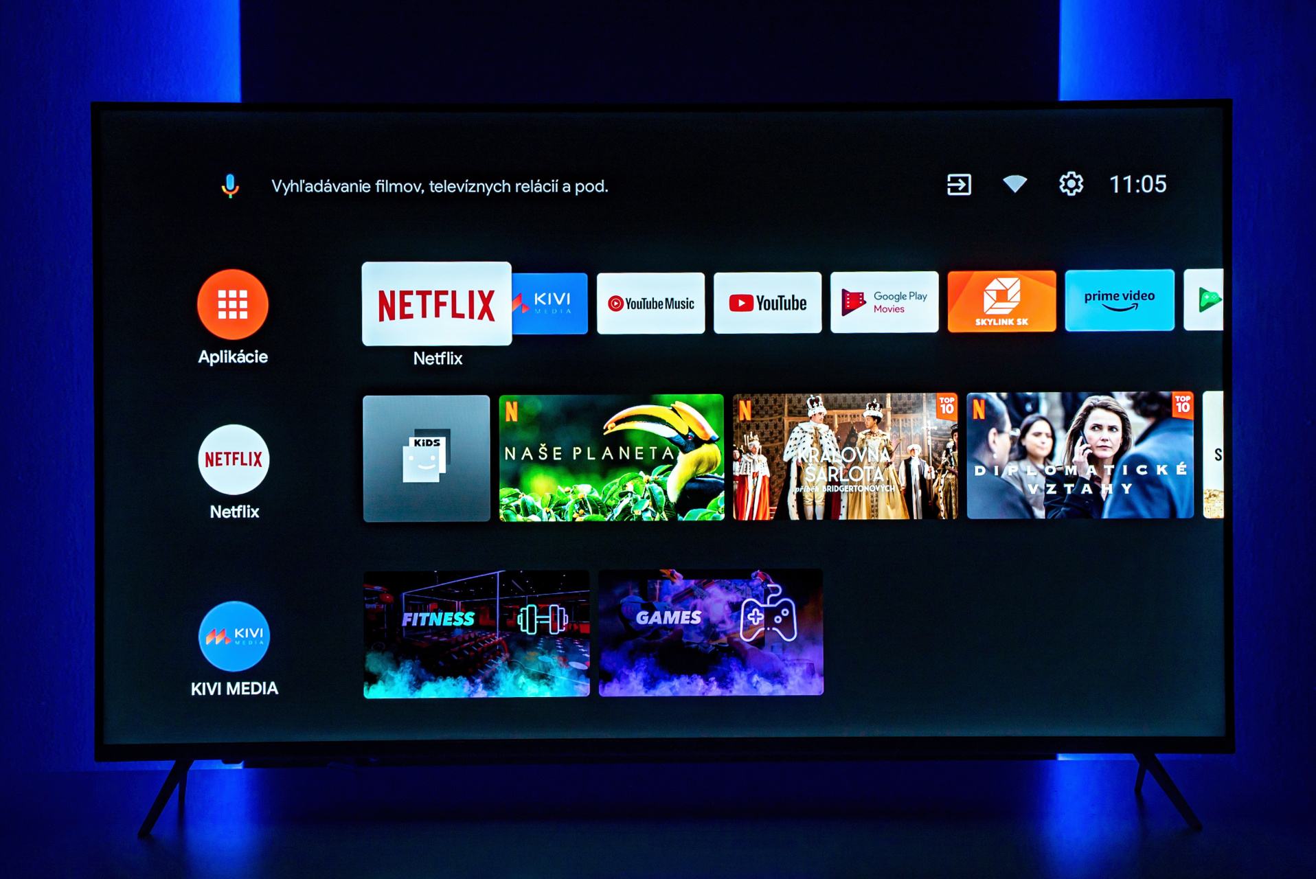 Špecialitou je svet zábavy Kivi Media 2.0, čo je celý systém aplikácií už vopred nainštalovaný v televízore. Hneď po úvodnom naštartovaní celého systému tak môžete začať sledovať vysielanie. Samotná inštalácia televízora zaberie pár minút, ide hlavne o aktualizáciu operačného systému, nastavenie pripojenia na internet ako aj výber vhodných aplikácií.