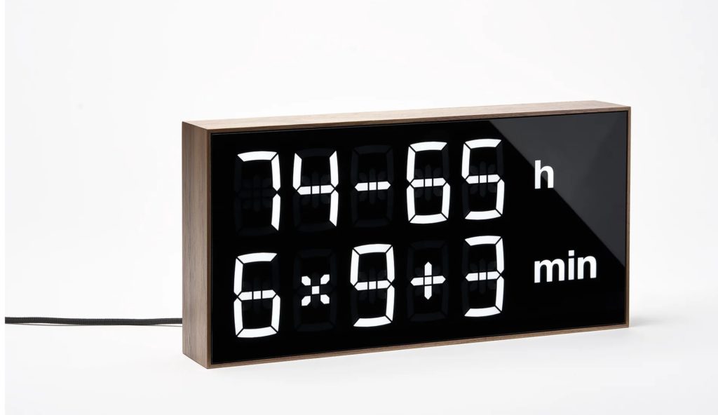 Hodiny v skutočne uletených formách sme už videli. Tieto sú viac konzervatívne, avšak na zistenie presného času budú vyžadovať precvičovanie matematiky. Namiesto zobrazenia času sa v dvoch riadkoch zobrazuje matematický výpočet. Na zistenie správneho čísla ho potrebujete dokončiť. Jeden na zistenie hodín, druhý na zistenie minút. Ideálne ak vám spočítanie netrvá dlho, nanajvýš minútu od zobrazenia nového výpočtu. Inak budete minútu meškať. Umiestniť sa dajú na stôl aj na stenu. Výrobca hovorí, že zlepšenie v matematike nastane už po štyroch týždňoch. My len dodáme, že váš školáčik bude musieť čas skutočne počítať, nie odhadovať. Skoro 400 eur je ale viac ako dosť.