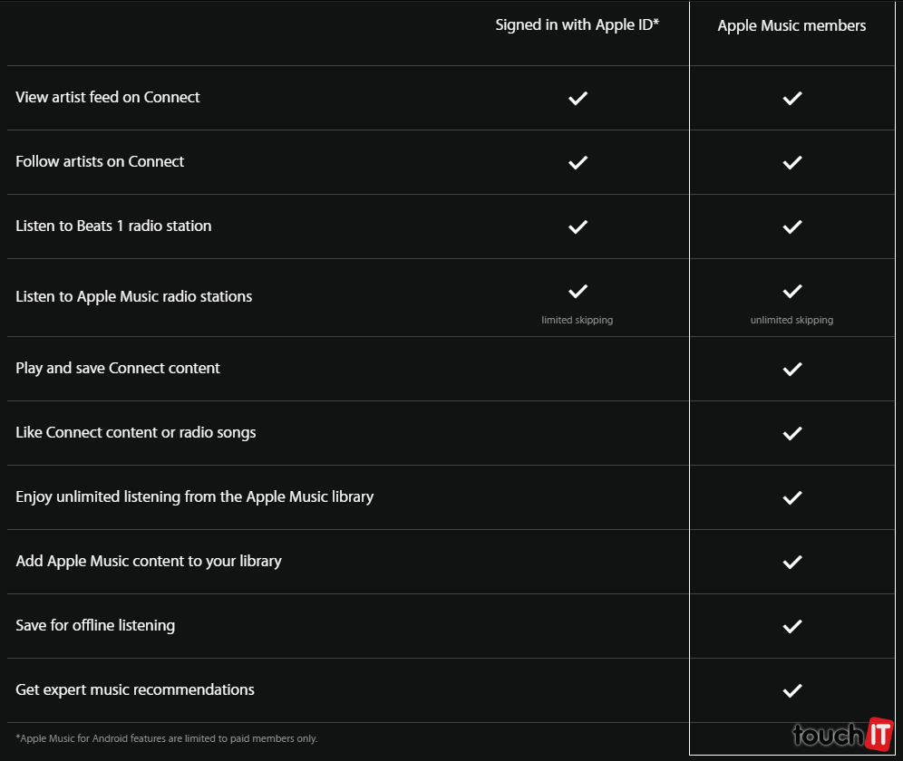 Apple Music kombinuje 3 služby. Je to hudobná streamovacia služba, ktorá umožní počúvať milióny pesničiek z obchodu iTunes. Tie si môžete ukladať aj v režime offline. Nie je známe, či Apple Music obsahuje všetky pesničky z knižnice iTunes alebo iba vybrané. Napr. v obchode Google Play sú pesničky, ktoré môžete streamovať alebo si ich zakúpiť, avšak aj také albumy, ktoré si iba zakúpite.