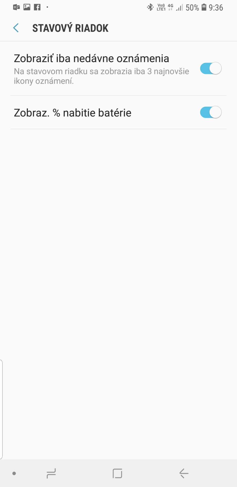 V predvolenom stave zobrazuje Galaxy Note9 v hornej lište len tri notifikačné ikony. Ostatné notifikácie zobrazuje ako bodky. To by bolo výhodné, keby Note9 mal výrez, čo však (našťastie) nemá. Preto je možné jednoducho zrušiť tento limit na zobrazovanie troch posledných ikon notifikácií. Ako na to? Choďte do Nastavenia – Zobrazenia – Stavový riadok a tam si vyberiete možnosť zrušenia limitu, prípadne aj zrušenia zobrazenia ostávajúcej kapacity batérie v percentách. Od tej chvíle Note9 zobrazuje všetky notifikácie v hornej lište.