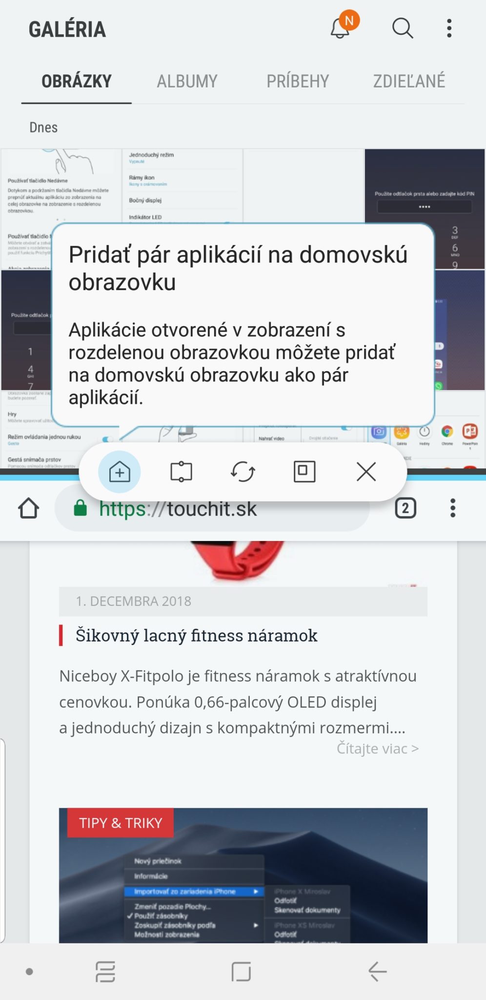 Galaxy Note9 stále používa multitasking – teda prácu s viacerými aplikácii na jednom displeji. Len v prípade tohto telefónu je multitasking tak trochu ukrytý. Začnite takto: Nastavenia – Pokročilé funkcie – Zobrazenia viacerých okien. Po aktivovaní tejto voľby budete môcť pomocou virtuálneho tlačidla Nedávne prepínať medzi podporovanými aplikáciami v podobe rozdelenej obrazovky alebo použiť funkciu Prichytiť okno. Aplikácie otvorené v zobrazení s rozdelenou obrazovkou môžete pridať na domovskú obrazovku ako jeden pár. To sa vám oplatí vtedy, ak máte napr. častú požiadavku mať otvorený internetový prehliadač a súčasne galériu fotografií. Veľkosti jednotlivých okien sa dajú ľahko prispôsobovať posúvaním ich rámu – ideálne dotykovým perom. Podporované aplikácie tiež môžete zobraziť v podobe plávajúcich ikon.
