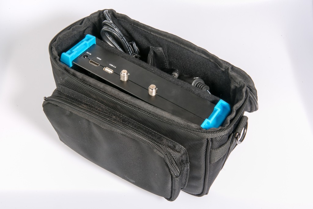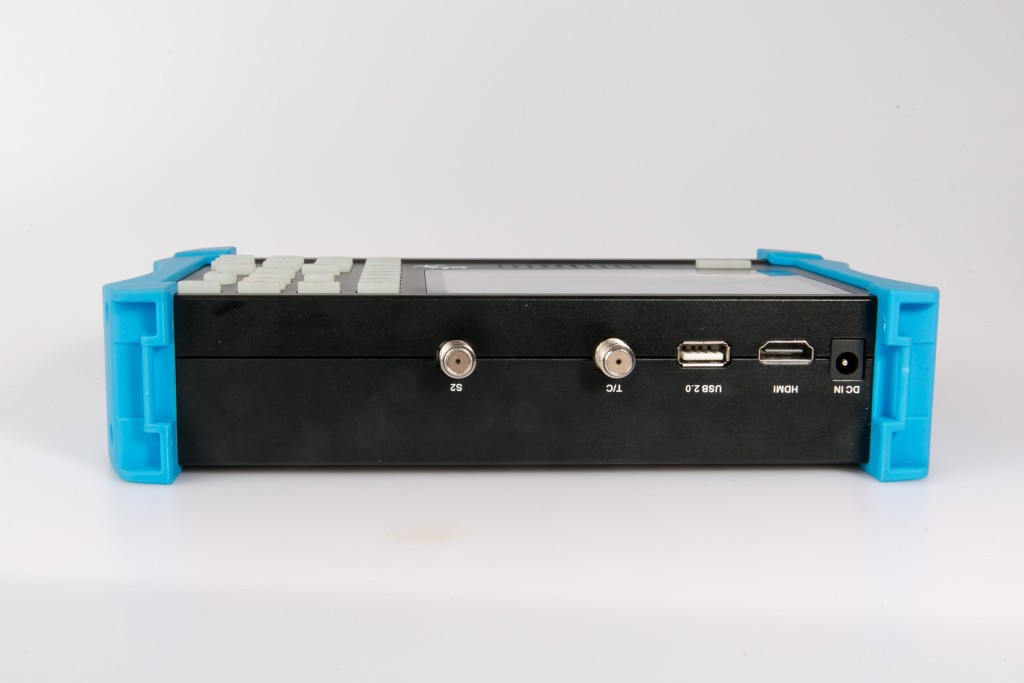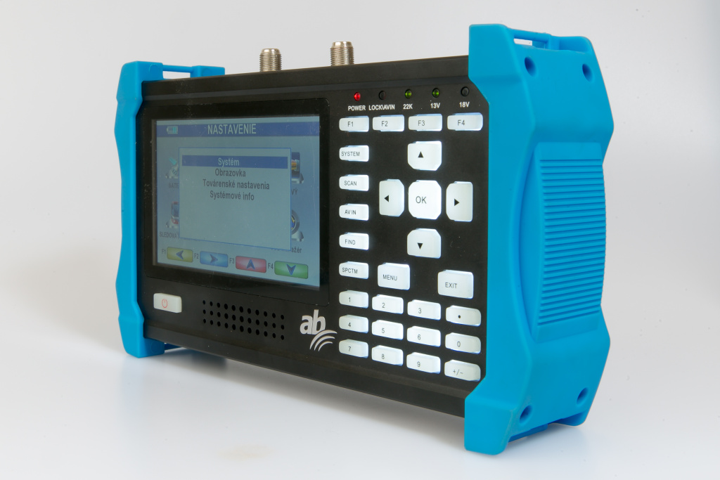 Základnou časťou predného panelu je veľký, až 5-palcový farebný displej, pri ktorom môžete nastaviť jas, kontrast a sýtosť farieb. Tak dosiahnete, že údaje na displeji vidíte aj počas jasnejšieho dňa. Ovládacie tlačidlá sú pogumované a podsvietené, je teda možnosť pohodlne ovládať tento prístroj aj za šera. Na zabudovanú batériu (Li-oN 2 × 2700mAh) sme ho mohli používať okolo 3 hodín, rovnako nabíjanie úplne prázdnej batérie trvalo 3 hodiny. Prístroj sa dá nabíjať (alebo prevádzkovať) s pripojením na elektrickú sieť alebo do adaptéra na cigaretový zapaľovač v automobile. Na hornej strane sa nachádza pripojenie na satelitný a terestriálny/káblový signál (oba sa pripájajú cez F konektor) , je tu aj napojenie na HDMI, USB 2.0 a pripojenie externého napájacieho adaptéra. Cez HDMI port sa dá zobraziť výstup na väčšom displeji. USB port slúži na uschovanie niektorých výsledkov pri meraní, nahrávanie prijatého TV vysielania vo formáte .ts a aktualizáciu firmware.