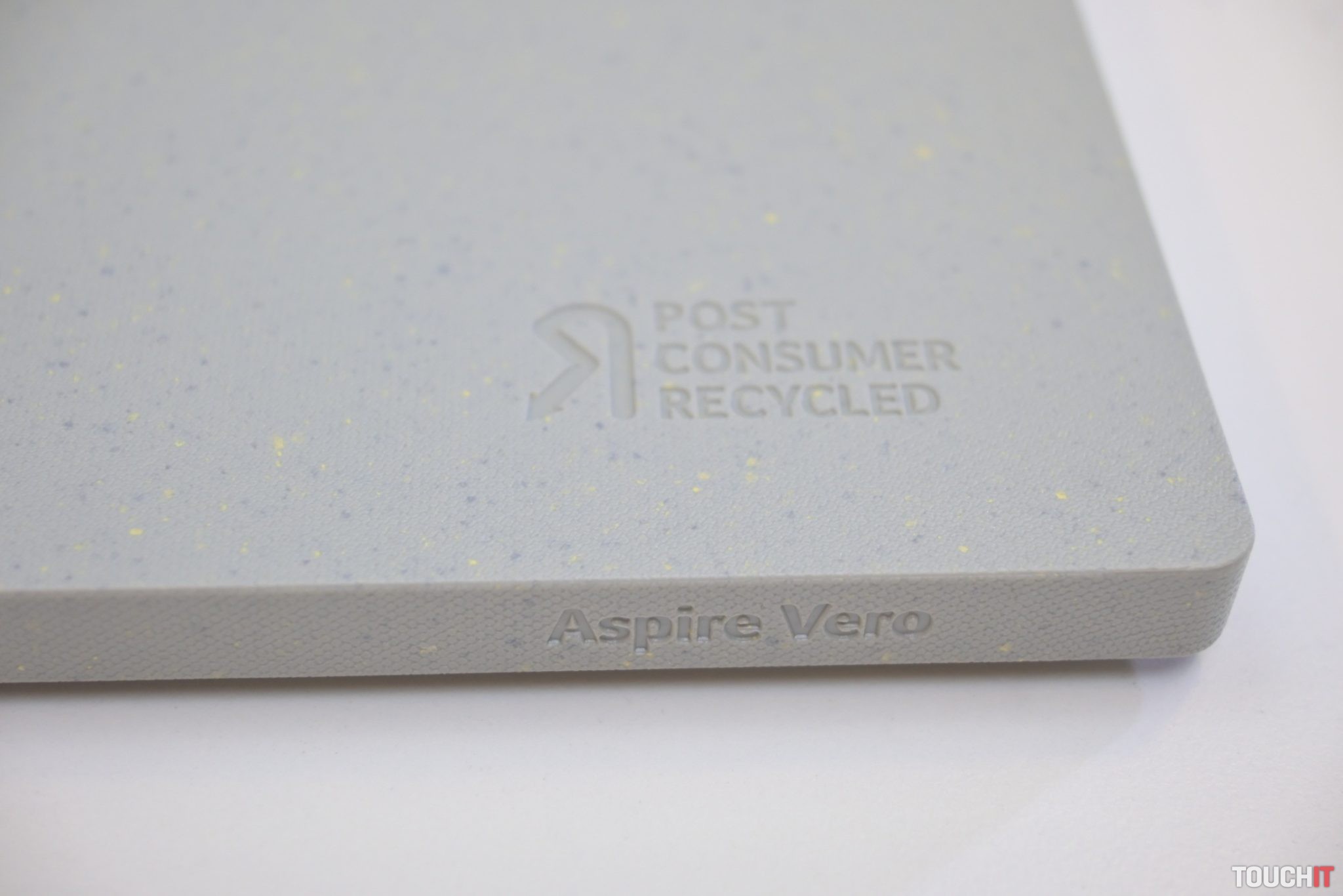 Výrobca ho vyhotovil z recyklovaného plastu. Túto iniciatívu chválime a zatiaľ tieto vody takmer nikto neprebádal. Ostatní výrobcovia sa tiež snažia udržať čo najnižší dopad na ekológiu. Avšak je celkom jasné, že nie všetko sa dá vyrobiť týmto spôsobom. Acer na to použil 30 % plastu a ušetril tak na výrobe notebooku celkovo 21 % emisií CO2. Svoj proces nazýva Post Consumer Recycled.