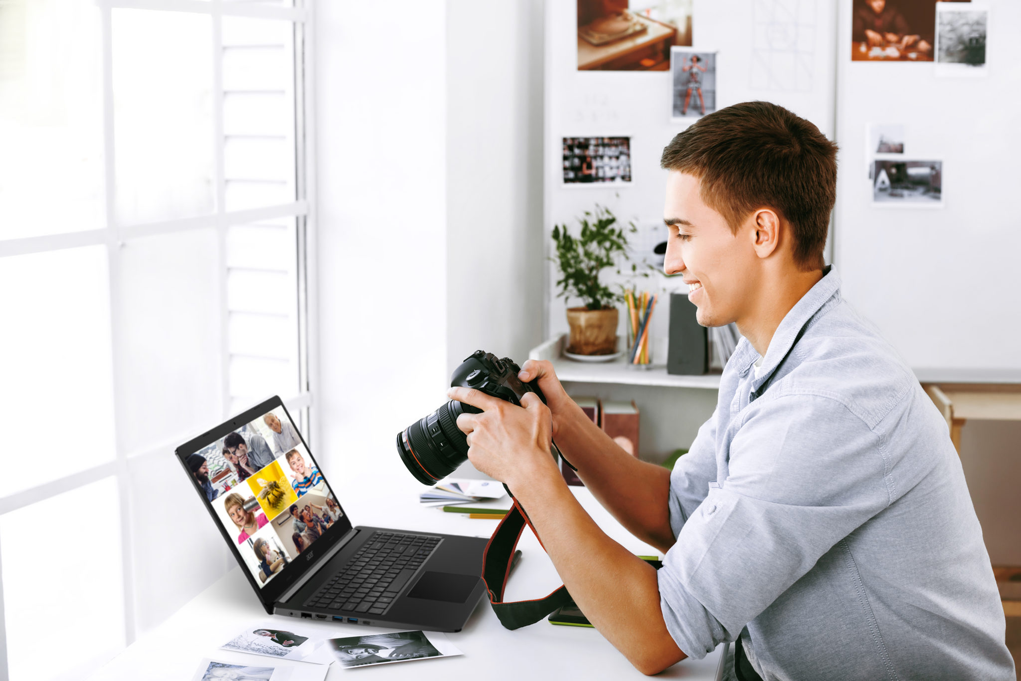 Acer Aspire 5 je zameraný na rodinných príslušníkov, blogerov, fotografov a nadšencov, ktorí potrebujú viac výkonu a bohatšie funkcie. Bol navrhnutý tak, aby ponúkol mobilitu a štýlový vzhľad. Môže sa pochváliť horným krytom z pieskovaného hliníka a hrúbkou len 17,95 mm, pritom je osadený až 15,6 „Full HD IPS displejom, procesorom Intel Core i7 ôsmej generácie a grafikou NVIDIA GeForce MX250 alebo procesorom AMD Ryzen Mobile druhej generácie s grafikou Radeon Vega a dedikovanou grafikou Radeon RX 540. Aspire 5 tak poskytne vynikajúci výkon, rýchlejšie načítanie aplikácií aj plynulejšiu prácu s viacerými aplikáciami naraz. Konštrukcia so 7,82 mm s úzkymi rámčekmi okolo displeja ponúka väčšiu plochu viditeľného obrazu a Full HD IPS displej spoločne s technológiou Acer Color Intelligence poskytuje verné farby. Vďaka technológii Acer TrueHarmony si používatelia vychutnajú hudbu aj filmy s čistým, realistickým zvukom. Spoločne s pohodlím voliteľného snímača odtlačkov prstov na jednoduché prihlasovanie môže notebook ponúknuť kompatibilitu s osobnou digitálnou asistentkou Cortana. Tá je ďalšou výkonnou funkciou systému Windows 10, ktorá ponúka slobodu hlasového ovládania. Jeden z USB portov podporuje nabíjanie zariadení aj pri vypnutom notebooku, takže pripojený telefón nezostane bez napájania. Aspire 5 s pokročilými schopnosťami a jemne vyladeným dizajnom, ktorý uspokojí aj náročnejších užívateľov, podporuje prácu s náročnými multimédiami, čo z neho robí ideálnu voľbu pre každého, kto tvorí a zdieľa obsah na cestách. Či už ide o úpravu fotografií či online publikovanie, je Aspire 5 pre používateľov hľadajúcich lepší multimediálny výkon kľúčovým nástrojom.