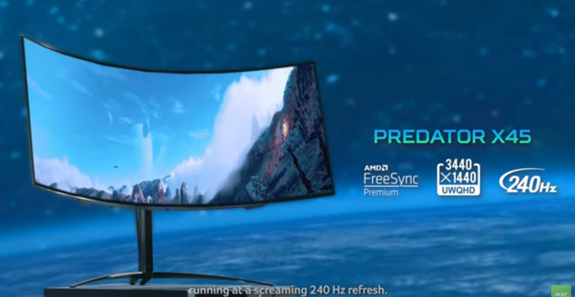Predator X45 je tak ultraširoký zakrivený monitor s polomerom zakrivenia 800R a úzkymi rámčekmi. Podporuje tiež 98,5 % pokrytie farebného priestoru DCI-P3. Monitor je vybavený portom DisplayPort 1.4 a dvoma portami HDMI 2.0, podporuje počítače aj konzoly a má certifikát TÜV Rheinland EyeSafe. Jeho jas je 1000 nitov a má nastaviteľný kovový stojan.