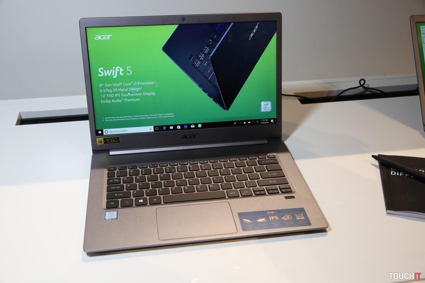 Acer aktualizoval svoj ultraprenosný 14-palcový Swift 5 (SF514-53T) o nové procesory Intel Core i7-8565U a Intel Core i5-8265U. Notebooky sú vďaka tomu výkonnejšie a dosahujú až 8-hodinovú výdrž batérie. Šasi notebooku poteší hmotnosťou iba 970 gramov a hrúbkou 14,9 mm. Jeho spodný a vrchný kryt je vyrobený zo zliatiny hliníka lítia.