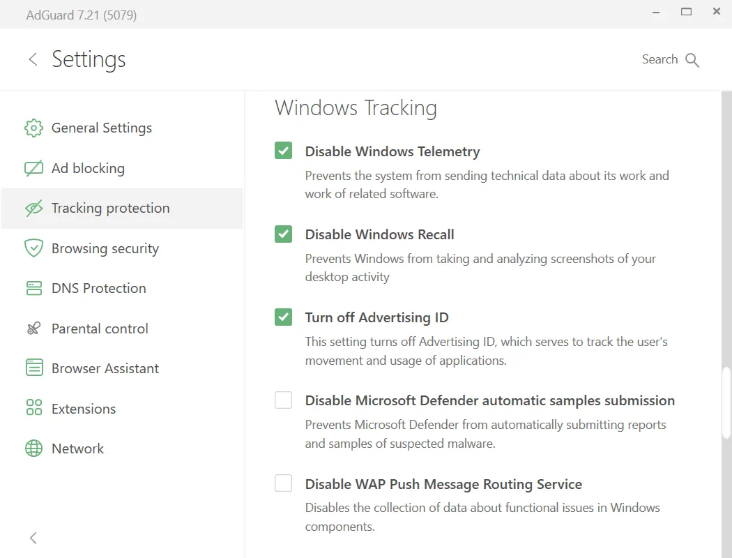 Aplikácia na blokovanie reklám AdGuard má v nastaveniach samostatnú položku na zákaz sledovania cez Recall a to aktivuje bezpečný režim, kedy sa vaša aktivita nebude zaznamenávať.