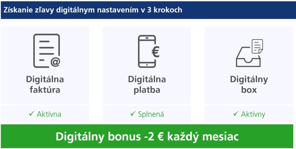 Aktivácia a využívanie Digitálnej faktúry a Digitálneho boxu sú samozrejme bezplatné ako aj digitálny spôsob platby faktúr.