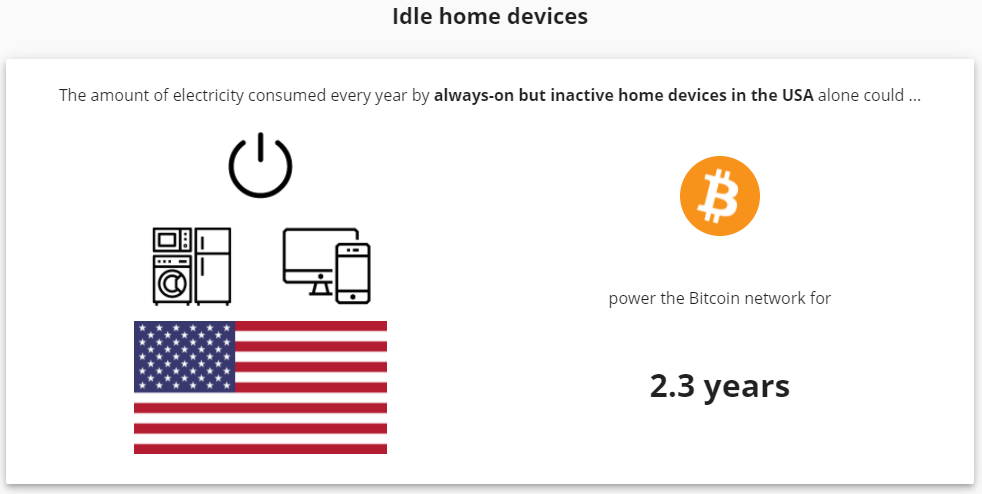 Výnimkou nie sú ani argumenty, že vlastne prevádzka bankového systému je niekoľkonásobne väčšina s dopadom na životné prostredie. Len pre porovnanie, celosvetová spotreba elektrickej energie všeobecne (obnoviteľné + fosílne palivá) sa odhaduje na 20 863 TWh, z čoho Bitcoin reprezentuje 0,43 %.