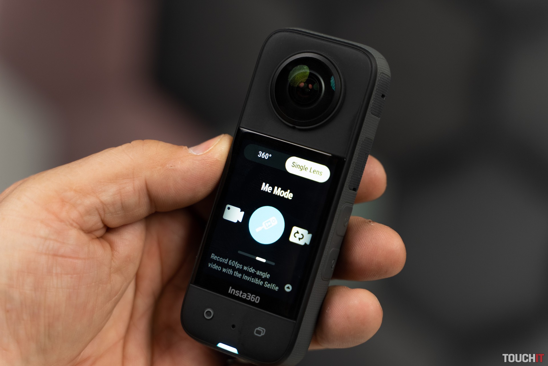Výhoda Insta360 X3 je v tom, že je to jednak 360° kamera, ale súčasne aj akčná kamera s pohľadom jednej kamery (môžete si vybrať ktorej). Nevyhnutnou súčasťou Insta360 X3 je selfie tyč, ktorú dokáže 360° režim prevádzky z obrazu veľmi dobre vymazať a rovnako ju nevidíte v prípade 180° v novom režime MeMode. Práve to je režim, ktorý sa dá s výhodou použiť, ak sa chcete nahrať ako keby z pohľadu inej osoby, pričom sa v skutočnosti nahrávate sami – ste teda bez kameramana.