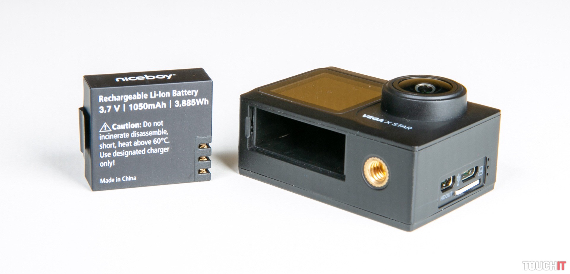 S batériou s kapacitu 1050 mAh sme vystačili na natáčania videa počas 2 hodinovej práce. Kameru je možné dobíjať aj cez powerbanku v teréne. Súčasťou dodávky nie je napájací adaptér, port pre nabíjanie je microUSB. Viac by nám vyhovoval tvar konektora s USB-C ako to majú dnešné smartfóny.