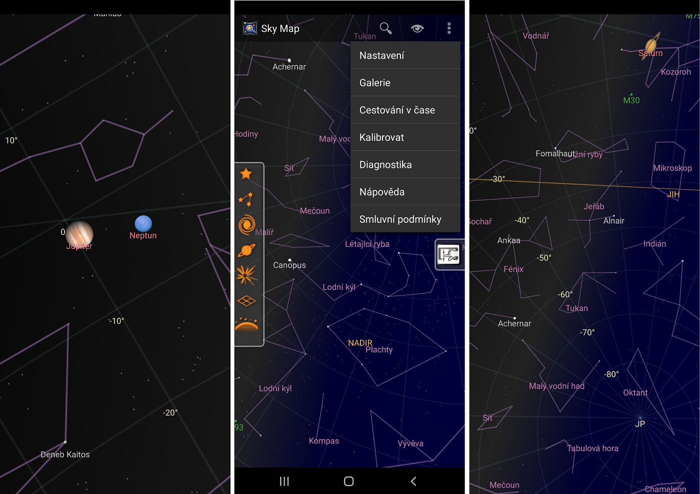 Dá sa však prepnúť aj do manuálneho režimu, keď sa o „pohyb“ oblohy na displeji nestará elektronický kompas a GPS, ale posúvate si ju ručne. Výhodou je, že si viete zapnúť, ktoré vesmírne telesá sa vám majú zobrazovať. Poteší tiež, že aplikácia je v češtine a úplne zadarmo, ako aj bez dodatočných nákupov, keďže ide o open source projekt. K dispozícii je ale len pre Android. Dobrou alternatívou však môže byť aplikácia Classic Sky Map 2 pre iOS.