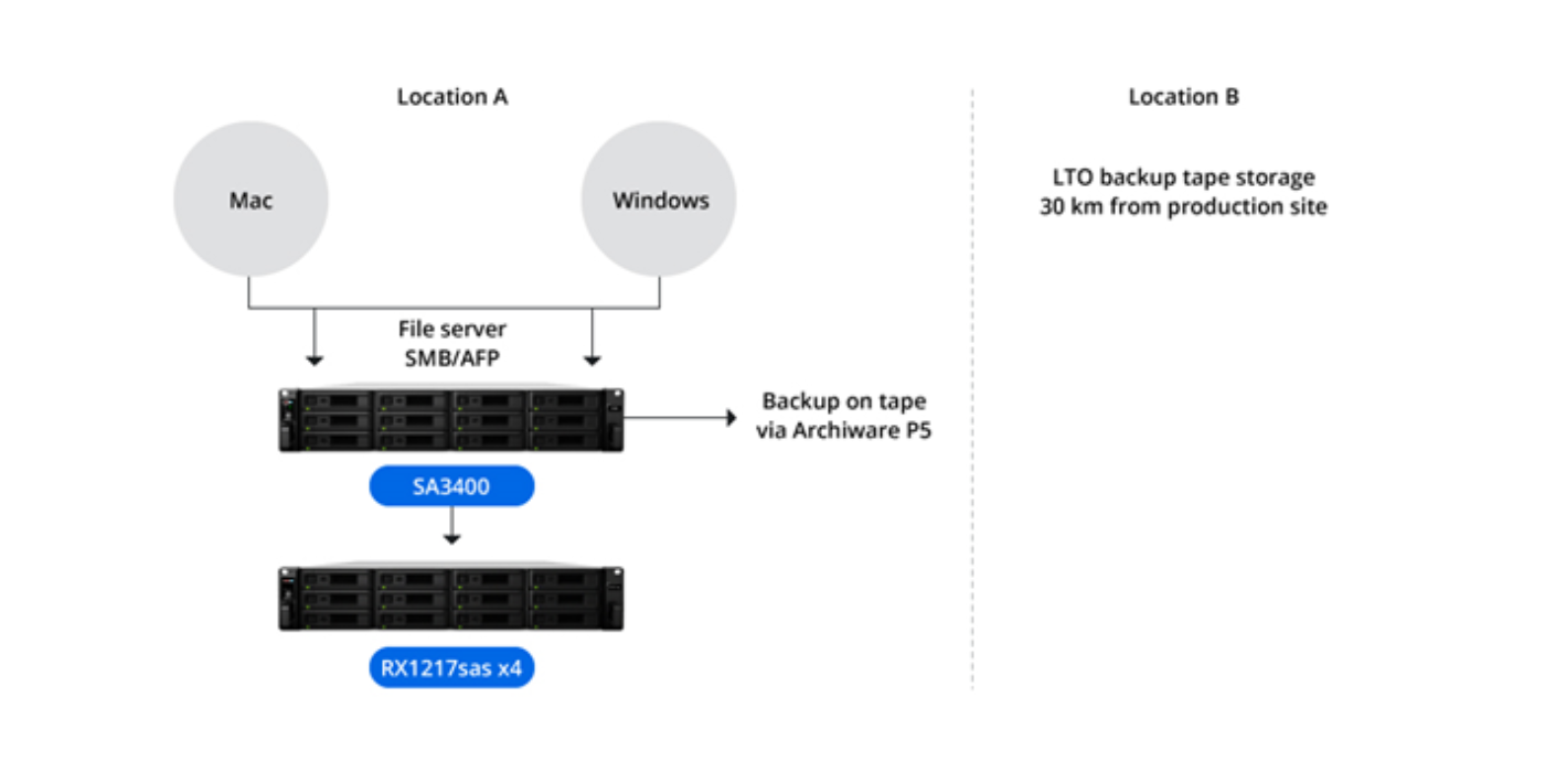 Aby dokázala splniť svoje záväzky súvisiace s ochranou dát, používala Národná knižnica úložiská na magnetickom páse LTO a softvér Archiware P5. Pomocou doplnkového balíčka Archiware nainštalovaného do systému Synology a vďaka vstavanému pripojeniu 10GbE zariadenia SA3400 môže knižnica na magnetický pás archivovať veľké množstvo dát, ktoré následne bezpečne uloží na vzdialenom mieste.