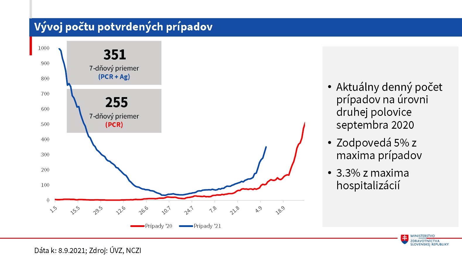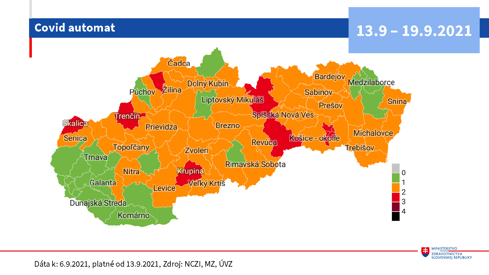 Mapa v podstate odráža rozličnú zaočkovanosť Slovenska, problémom je rýchly nárast. Aktuálne patríme medzi krajiny, kde počet prípadov rastie najrýchlejšie na svete. Od pondelka sa skracuje povinná karanténa zo 14 na 10 dní.