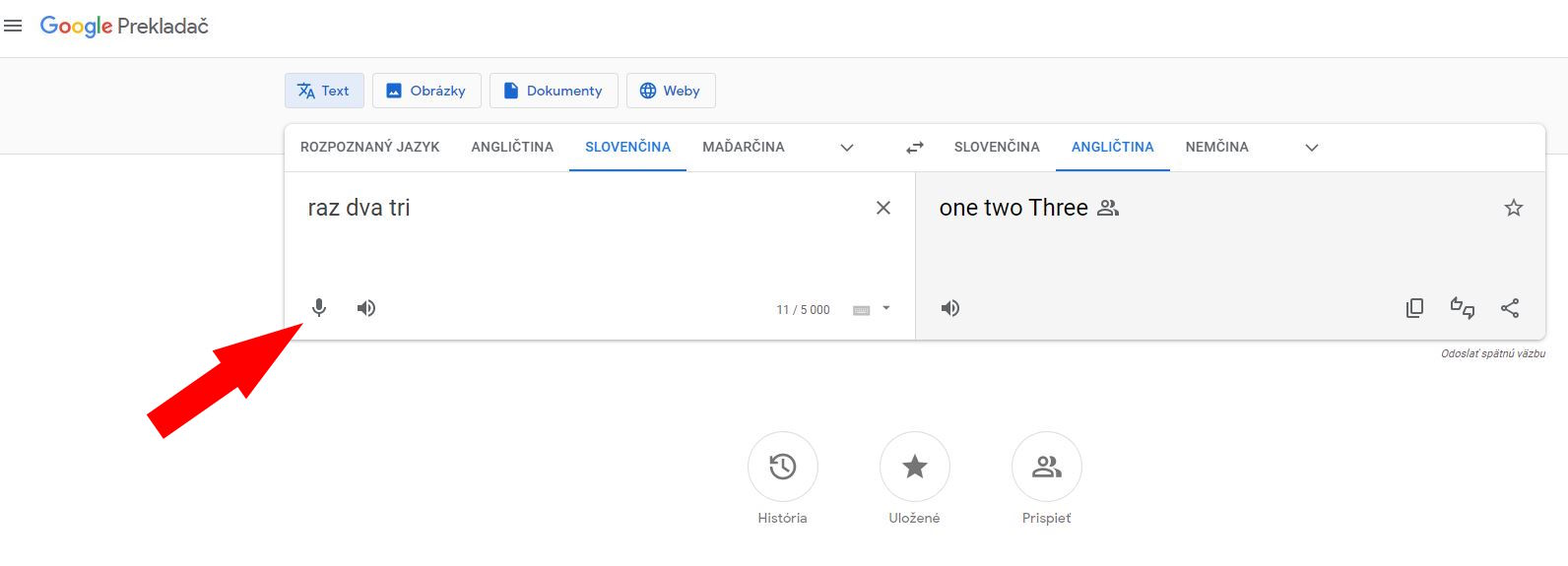 Napokon som zakotvil, pre niektorých možno trochu prekvapujúco, pri klasickom Google Translatore, teda Prekladači Google. Ten má totiž aj možnosť hlasového zadávania, funguje teda prakticky rovnako ako Okamžitý prepis (a aj rozpoznávanie hlasu má na starosti zrejme ten istý softvér, resp. beží na rovnakých serveroch).