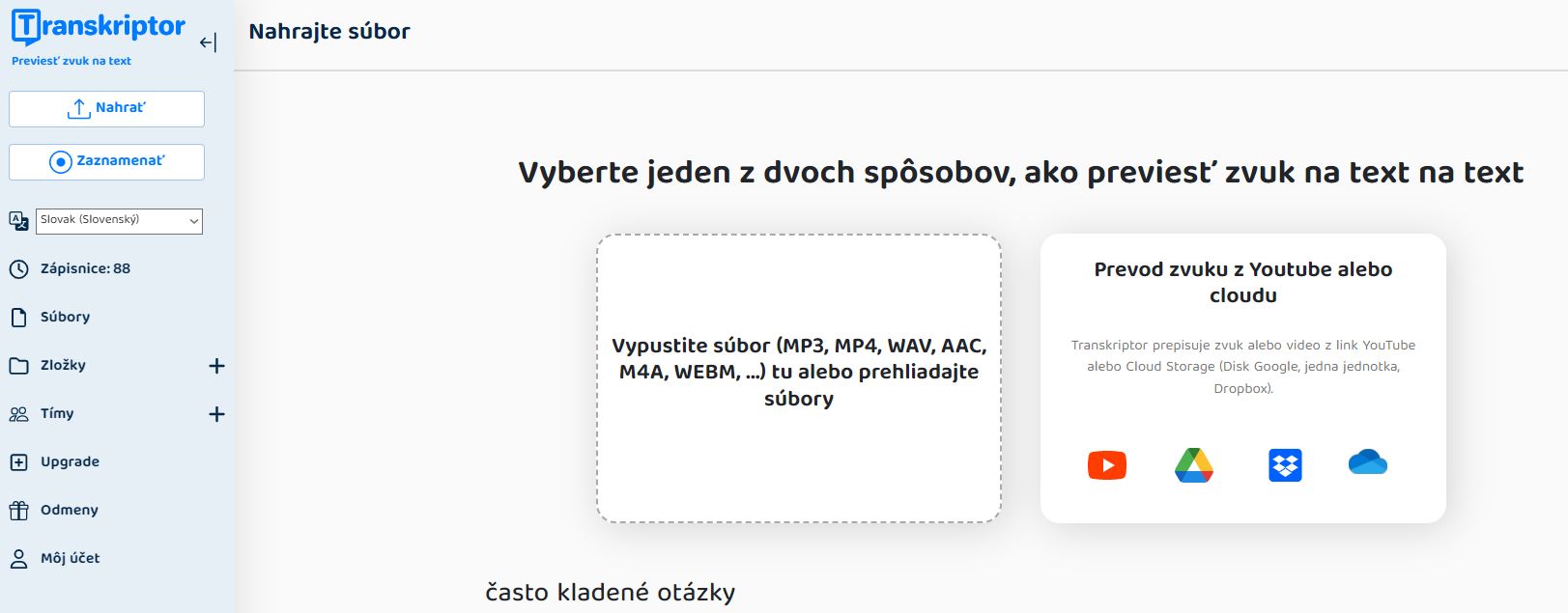 Skúšal som ešte službu Transkriptor.com, ktorá sa spôsobom používania ponáša na Beey.io. Ako sa na stránke uvádza, využíva technológiu Google Prekladač, teda vlastne to, čo používam najčastejšie a najradšej. Prekladanie jej však trvalo podstatne dlhšie ako platforme Beey.io.