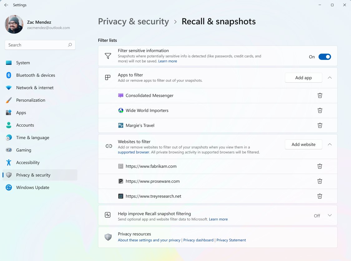 Microsoft vysvetľuje ako bude fungovať Recall a filtrovanie zberu údajov.