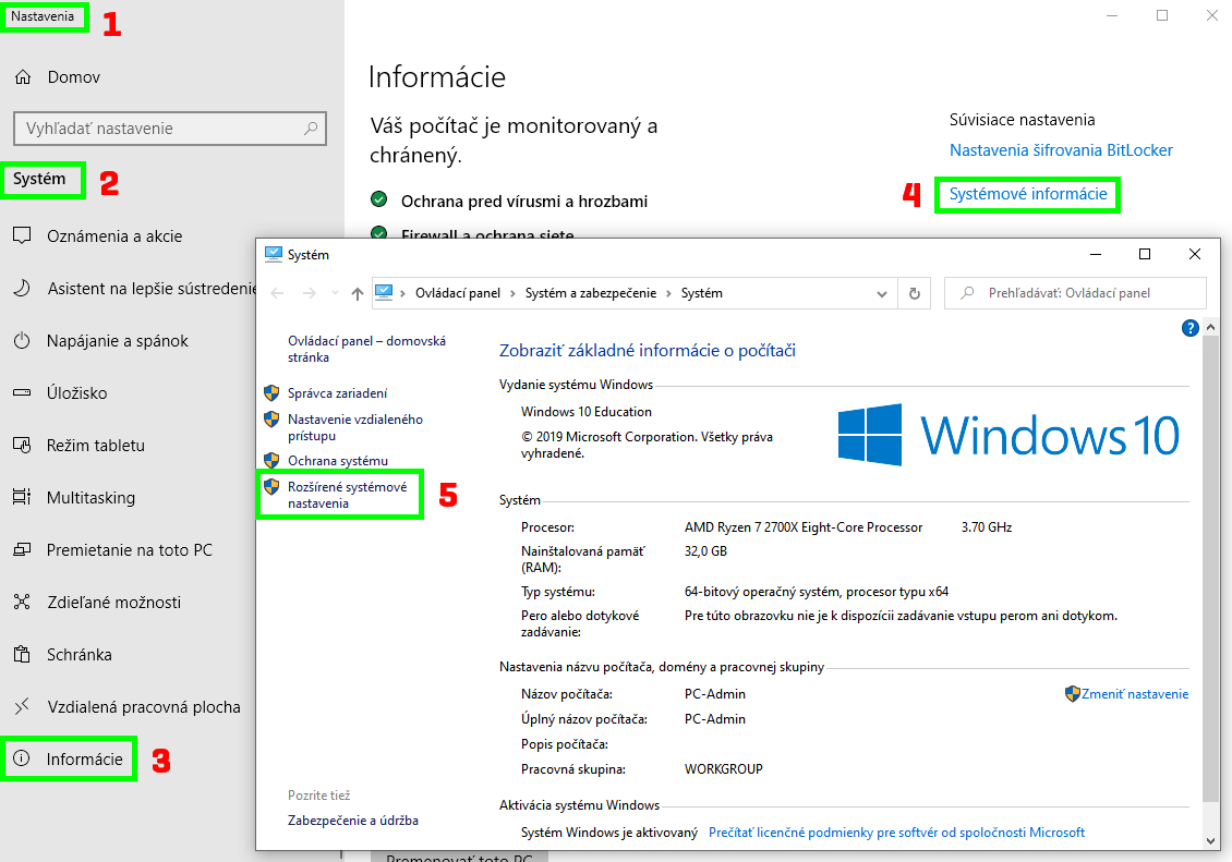 K tomuto nastaveniu sa dostanete napríklad tak, že kliknete pravým tlačidlom myši na menu Štart a vyberiete položku Systém. Tu kliknite vpravo na zobrazenie okna Systémových informácii (ak máte plnohodnotnú klávesnicu, je možné toto okno rovno vyvolať skratkou Win+PauseBreak).