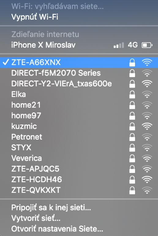 Interný Hotspot – mimo dostupnosti Wi-Fi siete príde vhod rýchly prístup k mobilným dátam z iOS zaradenia. Aby ste si zdieľali internet z iOS do macOS nepotrebujete urobiť nič špeciálne, stačí kliknúť na ikonu Wi-Fi na Macu, kde sa automaticky zobrazí možnosť zdieľania internetu z vášho iPhonu. Stačí používať identické Apple ID.