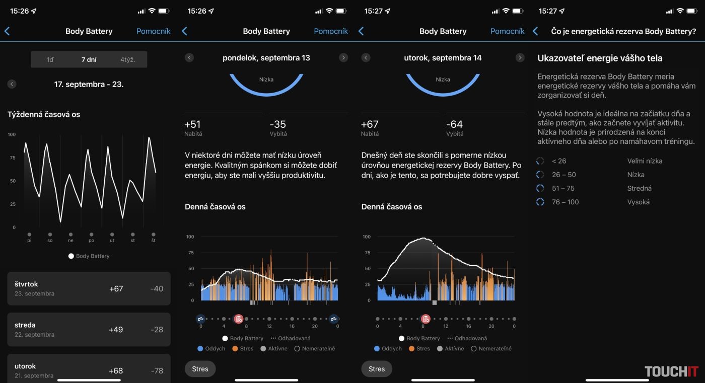 Funkcia Body Battery vám pomôže lepšie pochopiť, ako vaše telo reaguje na rôzne situácie počas každodenného života.