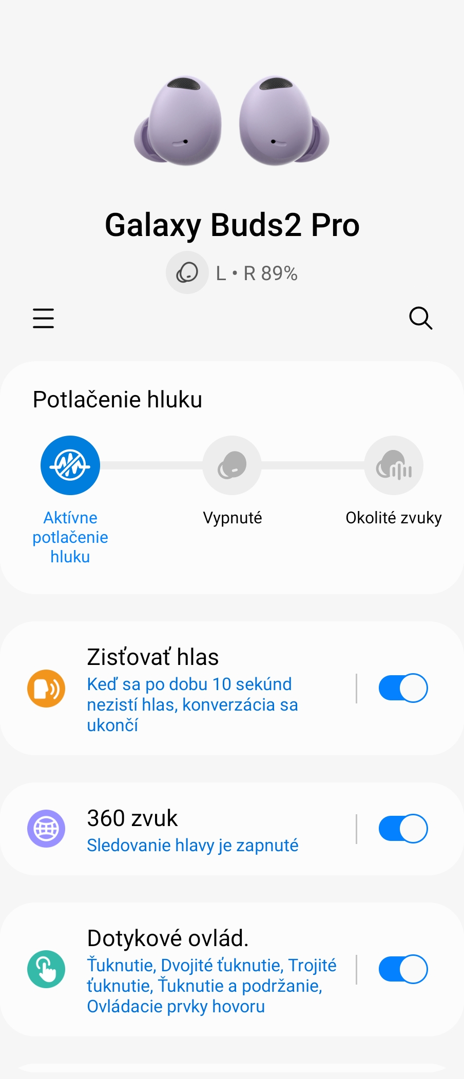 Slúchadlá Galaxy Buds2 Pro priadli hlavne v tom, ako je vyriešené potlačenie okolitého hluku. Môžete si nastaviť naozaj detailné potlačenie okolia v v pokoji s telefónom pracovať. Ak potom prehovoríte, slúchadlá to zaregistrujú a potlačenie okolia na chvíľu zrušia. Keď prestanete hovoriť, vrátia sa do režimu s potlačením vonkajšieho okolia. A veľmi oceňujeme integrovanú pomôcku na vhodný výber vložiek do ucha tak, aby ste počuli čo najlepšie.