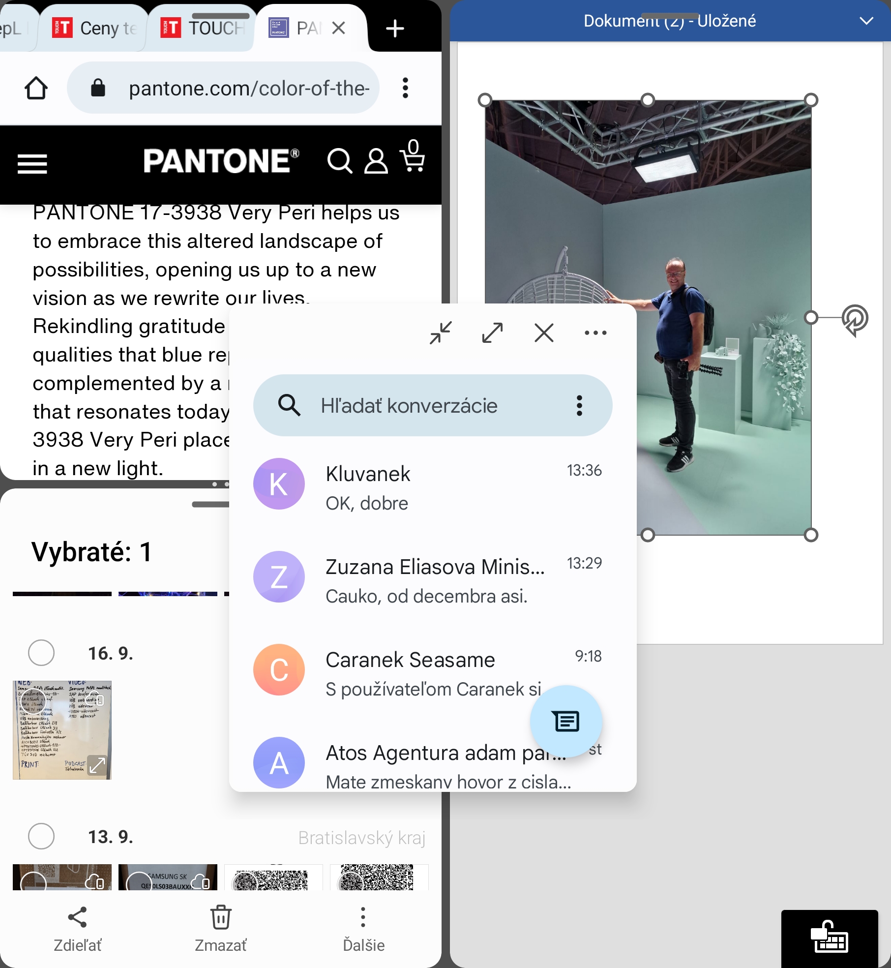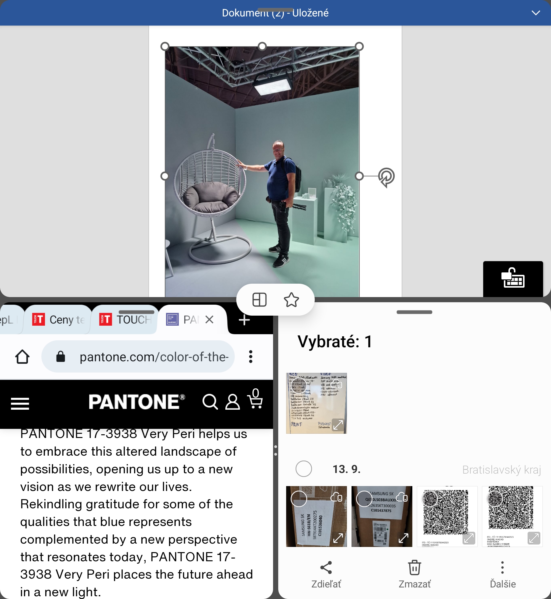 Mimochodom, na Z Fold4 môžete zobraziť celkov až 4 aplikácie, pričom štvrtá aplikácia je zobrazená v režime Pop-Up – je v strede displeja v malom okne a nad ostatnými aplikáciami. Je to síce možnosť napr. na získanie doplnkových informácií, ale tri aplikácia naraz na 7,6-palcovom displeji sú tak akurát.