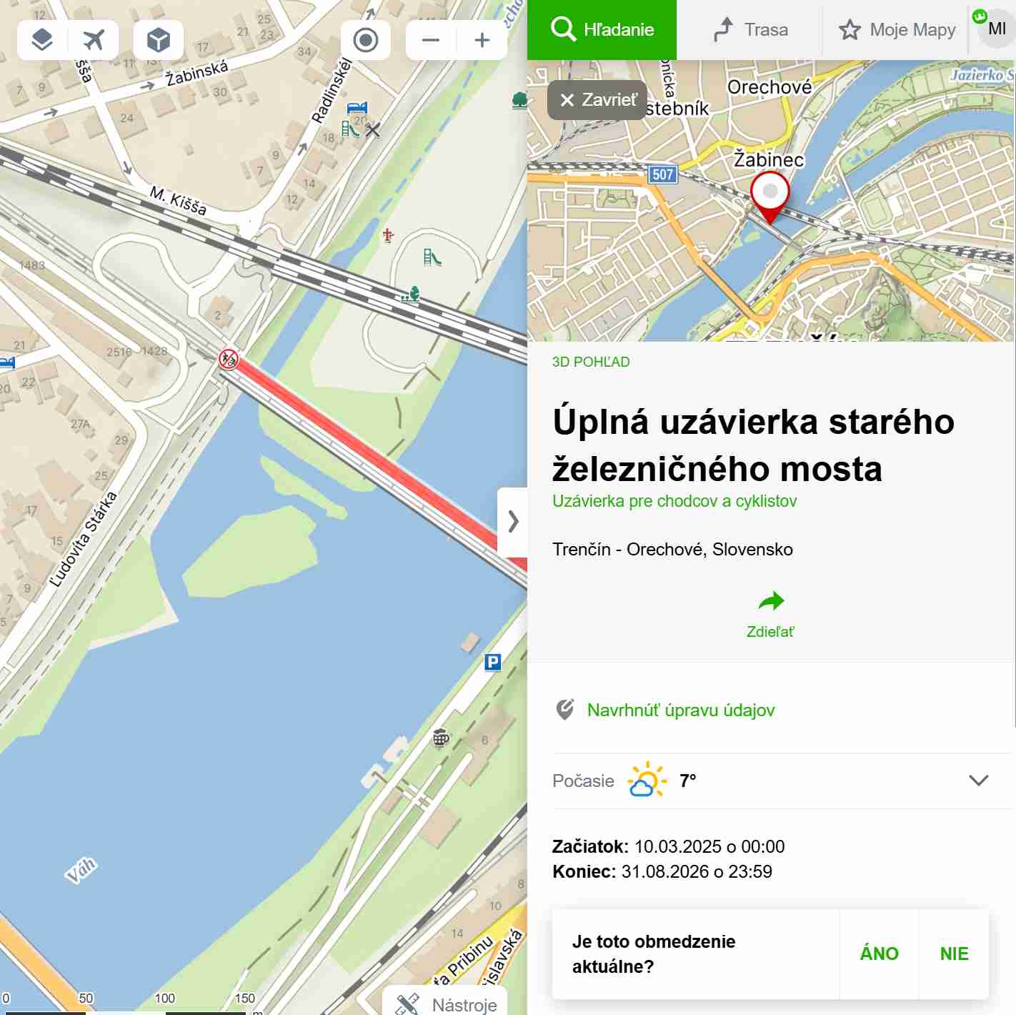 V každom prípade budú používatelia o konkrétnej zmene informovaní. Typickým príkladom môže byť rekonštrukcia mosta, ktorý zároveň slúžil ako cyklotrasa, no už je takmer 2 mesiace uzatvorený.