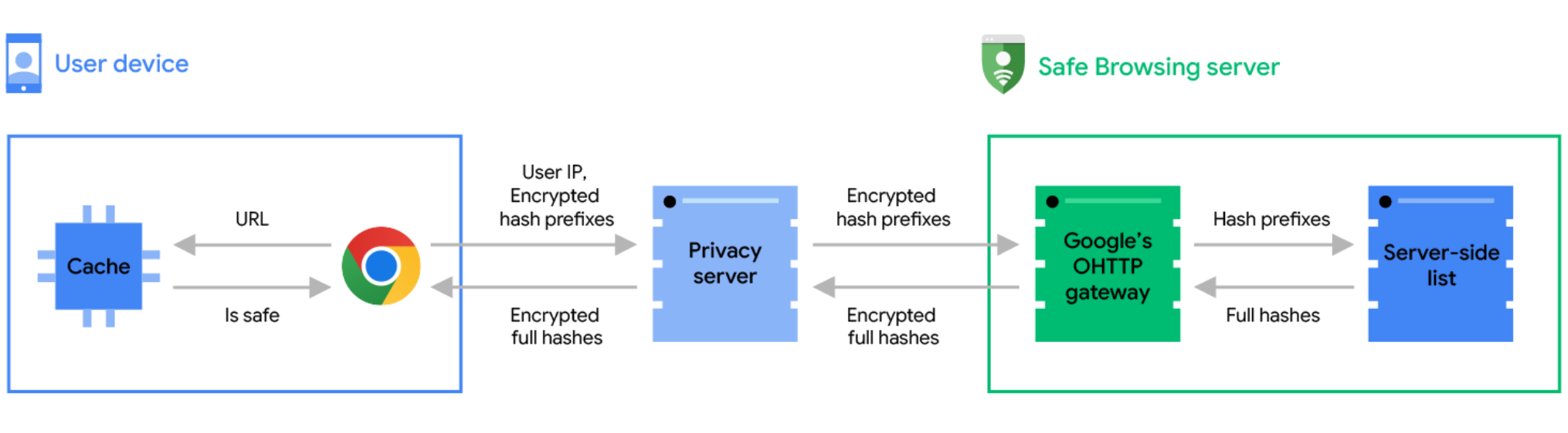 Firma uvádza, že ochrana súkromia je riešená prostredníctvom šifrovania. Predtým ako hash prefixy odošle vaše zariadenie na servery Googlu, Chrome ich zašifruje prostredníctvom verejného kľúča služby Safe Browsing. Ide o ochranu súkromných údajov a je to vhodný spôsob, ako ochrániť používateľov. Google nepozná váš súkromný kľúč, ktorý bol použitý na šifrovanie.
