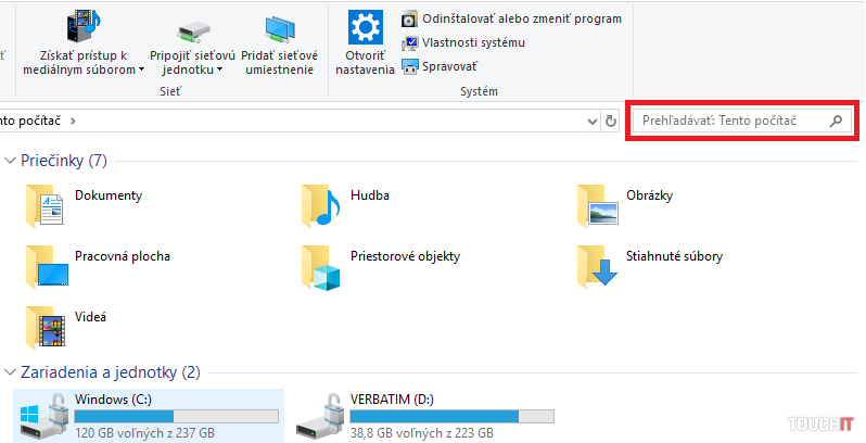 Avšak dá sa ešte trochu zjednodušiť. Štandardne totiž na vyhľadávanie použijete vyhľadávacie pole vpravo hore. Je v každom okne Prieskumníka. Ak chcete prehľadať celý počítač, použijete toto pole v zobrazení Tento počítač.