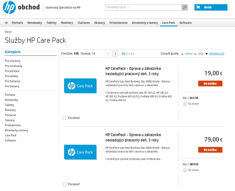 Platí 4 roky a stojí 89 €. Treba si ju kúpiť do 180 dní od kúpy zariadenia a registrovať na dané zariadenie do 30 dní od kúpy HP CarePack. Takýchto balíčkov a kombinácií je viac a pokojne si môžete vybrať aj balíček za 330 € s opravou u zákazníka nasledujúci pracovný deň. Tento balík má platnosť 5 rokov. S týmto sa stretnete aj inde a ide o tzv. On Site opravu. Pri niektorých balíkoch je možnosť ponechať si pevný disk u seba, notebook odovzdávate bez neho. Pozor, ak toto nemáte v balíčku zahrnuté, odobratím pevného disku porušujete záručné podmienky. Výrobca poskytuje možnosť sledovania stavu vašej opravy priamo na svojich stránkach. Treba zadať číslo objednávky a váš email alebo sériové číslo notebooku. Balíčky kúpite pre modely radu HP EliteBook, ZBook, Elite x2.