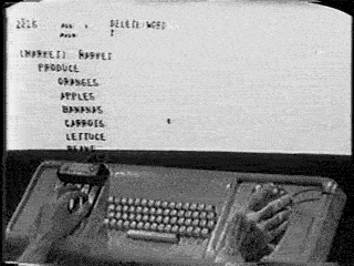 Po obrazovke sa začal pohybovať malý fliačik, ktorý Engelbart nazýval bug (chrobáčik či muška). Začal pritom na napísaný text klikať a stláčaním kláves ho rozmnožovať a kopírovať.