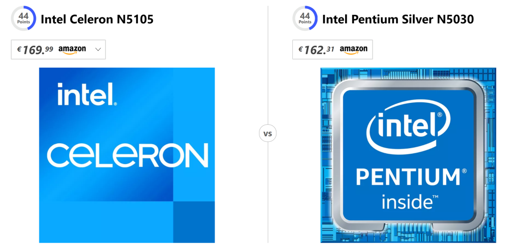 Začnime teda od procesora. Na výber je množstvo Celeronov, čo je logické pre ich cenu. Sú to menej výkonné procesory (CPU). Pentium ako CPU sú vhodné ako základ, no nedá sa jednoznačne povedať, že Pentium je všeliek. Ich architektúra je veľmi podobná a hovoríme o rozdieloch niekoľko Wattov energetickej úspory, 0,2 GHz rozdielnej frekvencii atď. Skrátka, ak máte vyhliadnutý počítač s Intel Celeron, nie je treba hľadať špeciálne Pentium. Ak však máte k dispozícii Pentium, zoberte ho.