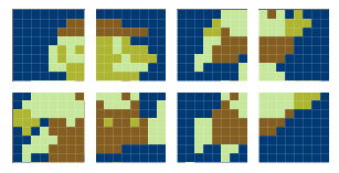 Všimnite si napríklad zelený kopec. Je tvorený 30 dlaždicami, ktoré by dohromady vyžadovali uloženie 1920 pixelov / bitov. Kombináciou a opakovaním je ale možné si vystačiť iba so šiestimi uloženými dlaždicami, teda 384 pixelmi / bitmi.