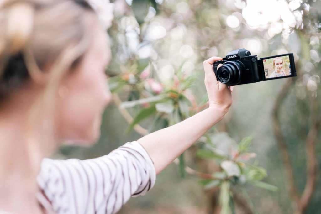 Bezzrkadlovka LUMIX G100 bol špeciálne vyvinutá pre vloggerov. Objektívy tohto fotoaparátu sa dajú vymeniť, a tak si môžete urobiť záber dostatočne široký aj vedy, ak máte kratšiu ruku.