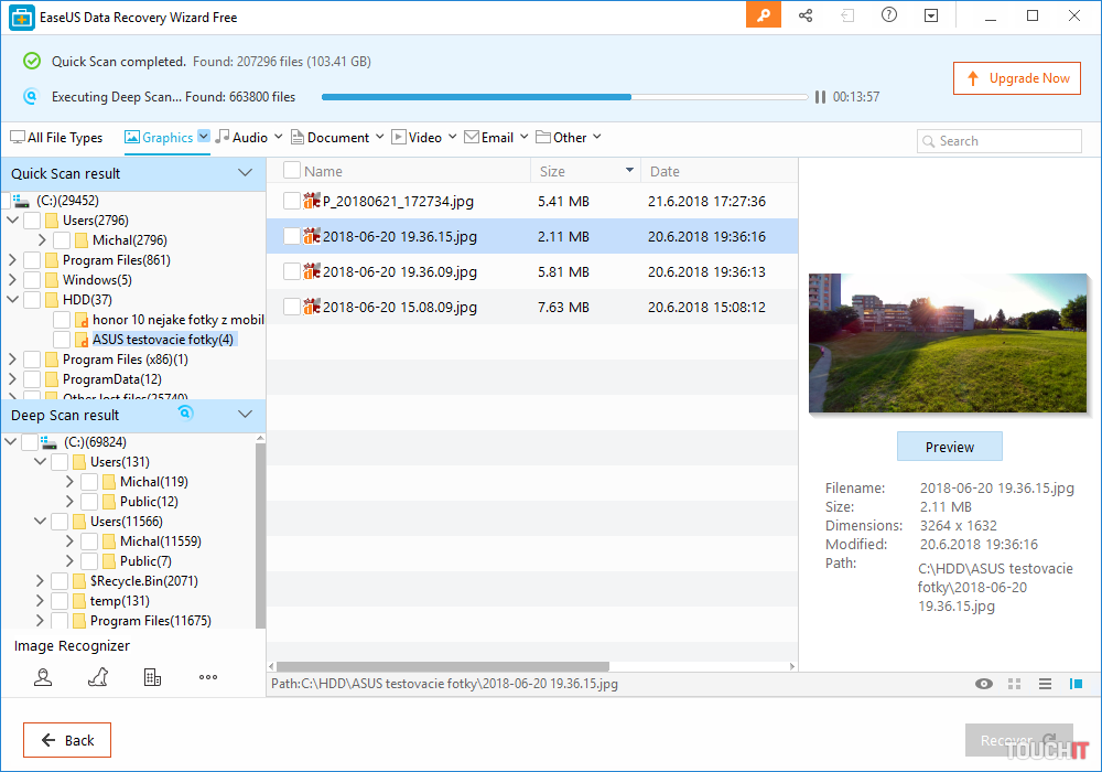 Program po spustení začne prehľadávať vami vybraný disk. Nemusí to byť len disk v počítači, pokojne to môže byť flash disk, externý disk, alebo napríklad pamäťová karta zo smartfónu. To využijete napríklad vtedy, keď ste mali fotografie ukladané na pamäťovú kartu a vymazali ste si ich v galérii v smartfóne.
