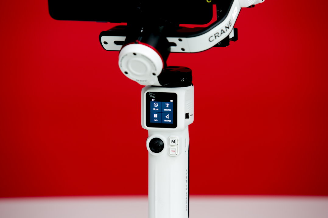Crane M3 je vybavený batériou 1150 mAh, s ňou dokáže pracovať okolo 7 hodín. Nabitie trvá asi 2 hodiny. Súčasťou dodávky nie je napájací adaptér. Ak pomocou tohto gimbalu natáčate v mieste, kde je málo svetla, potom oceníte zabudované svetlo. Zapnete to otočným kolieskom a môžete nastaviť jeho intenzitu. K svetlu sú 4 farebné filtre pridržiavané magneticky a je to veľmi spoľahlivé. Svietenie svetla znižuje celkovú dobu prevádzky gimbalu na batériu.