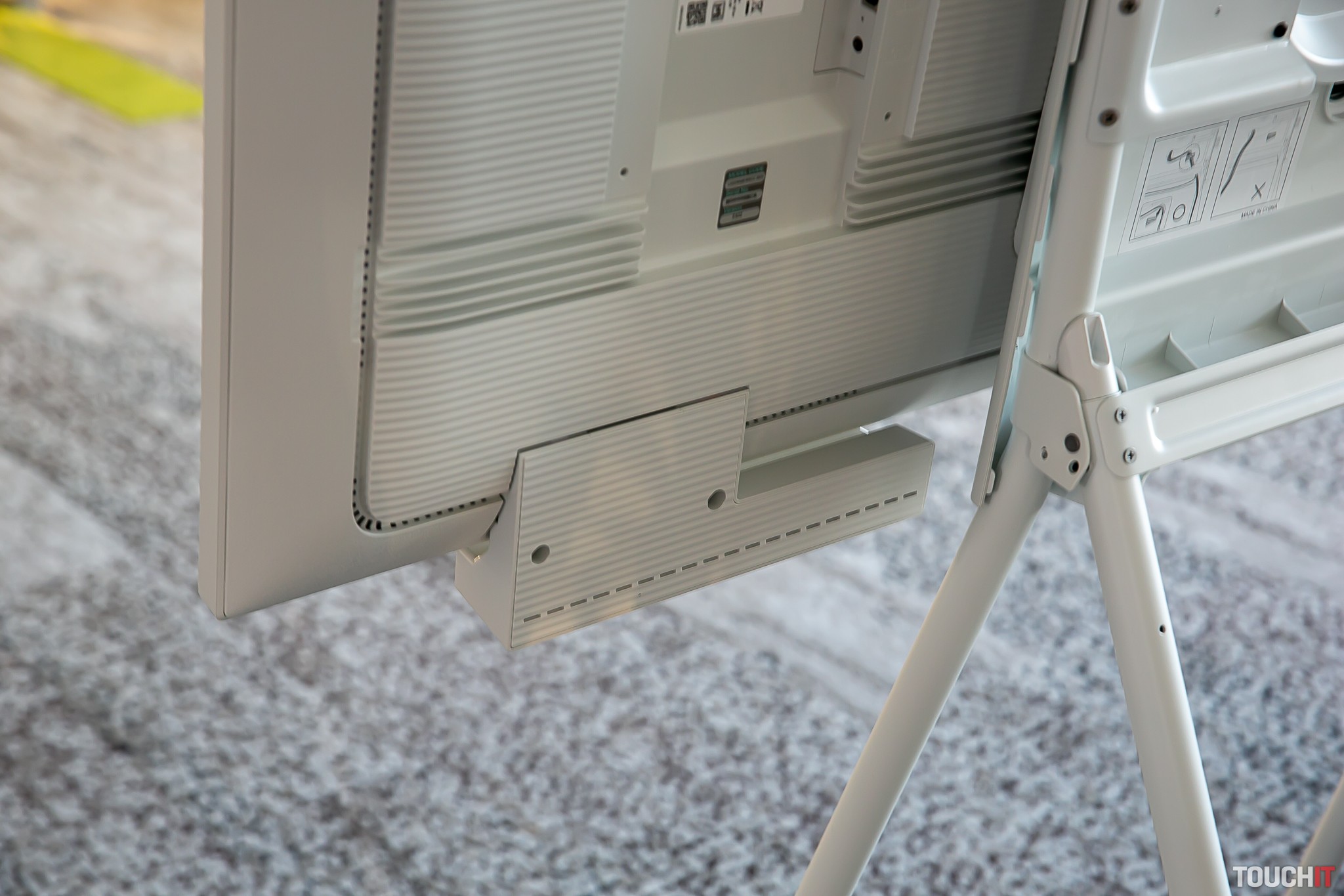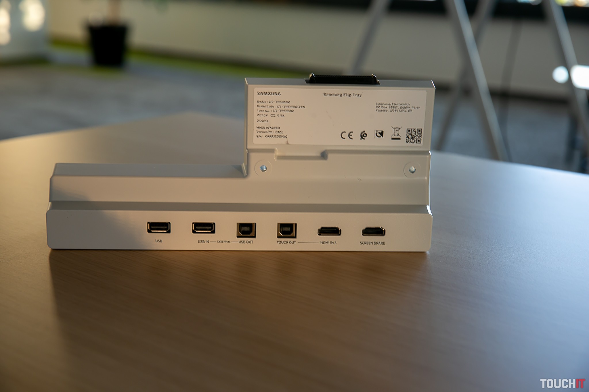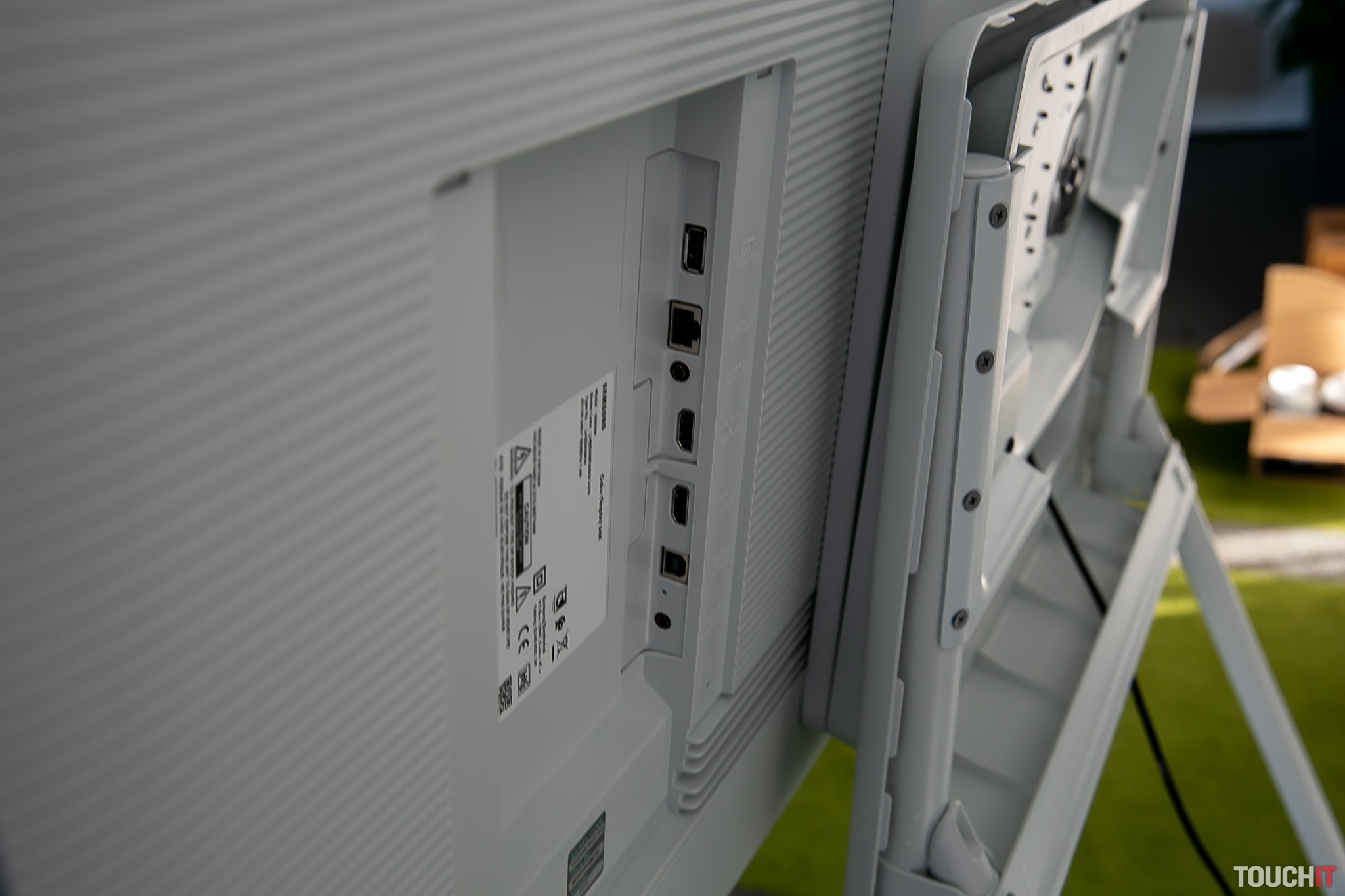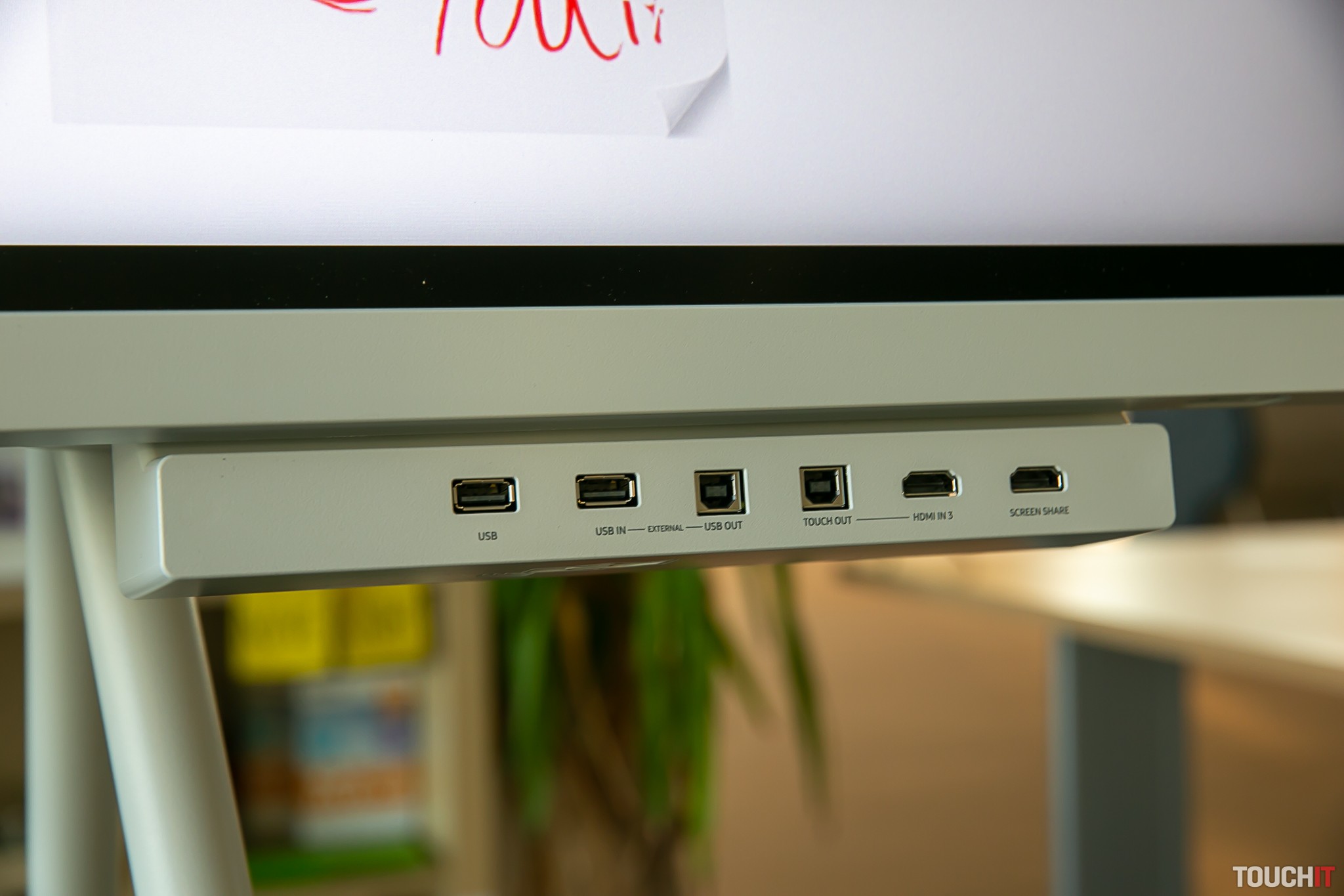Ako porty tu nájdeme HDMI 2.0, USB, súčasťou tohto displeja je aj dva reproduktory (10 W). 55-palcová verzia sa dodáva spolu s podstavcom, ktorý umožňuje pomocou systému koliesok ho ľahko prenášať na iné miesto (ideálne na podlahe bez kobercov). Samotná dodávka obsahuje dve veľké krabice – v jednej je displej, druhý tvorí spomenutý podstavec. Celková váha zariadenia je takmer 30 kg a pri jeho pohybe tak naozaj oceníte kolieska.