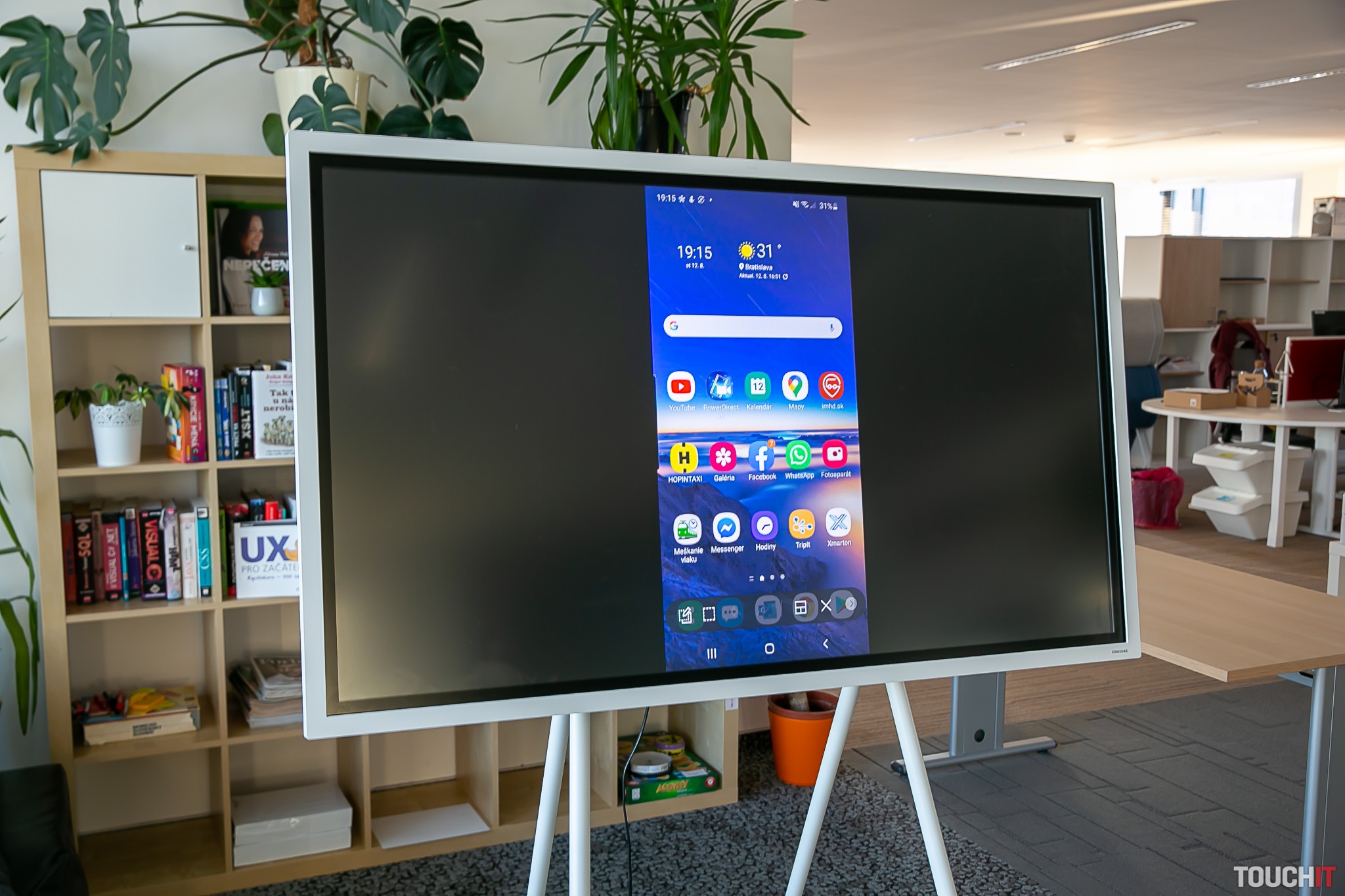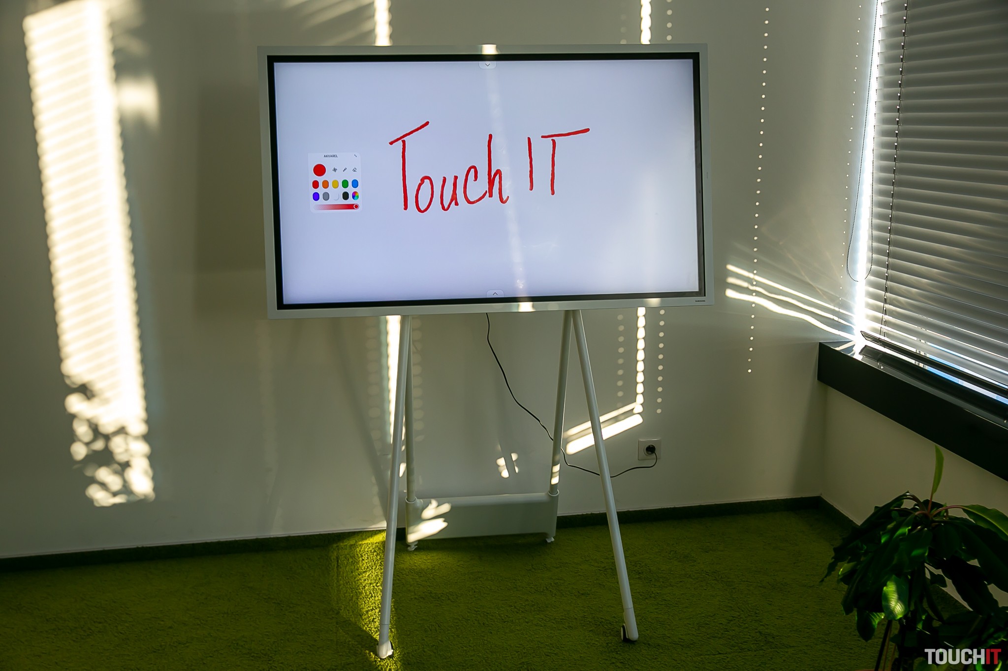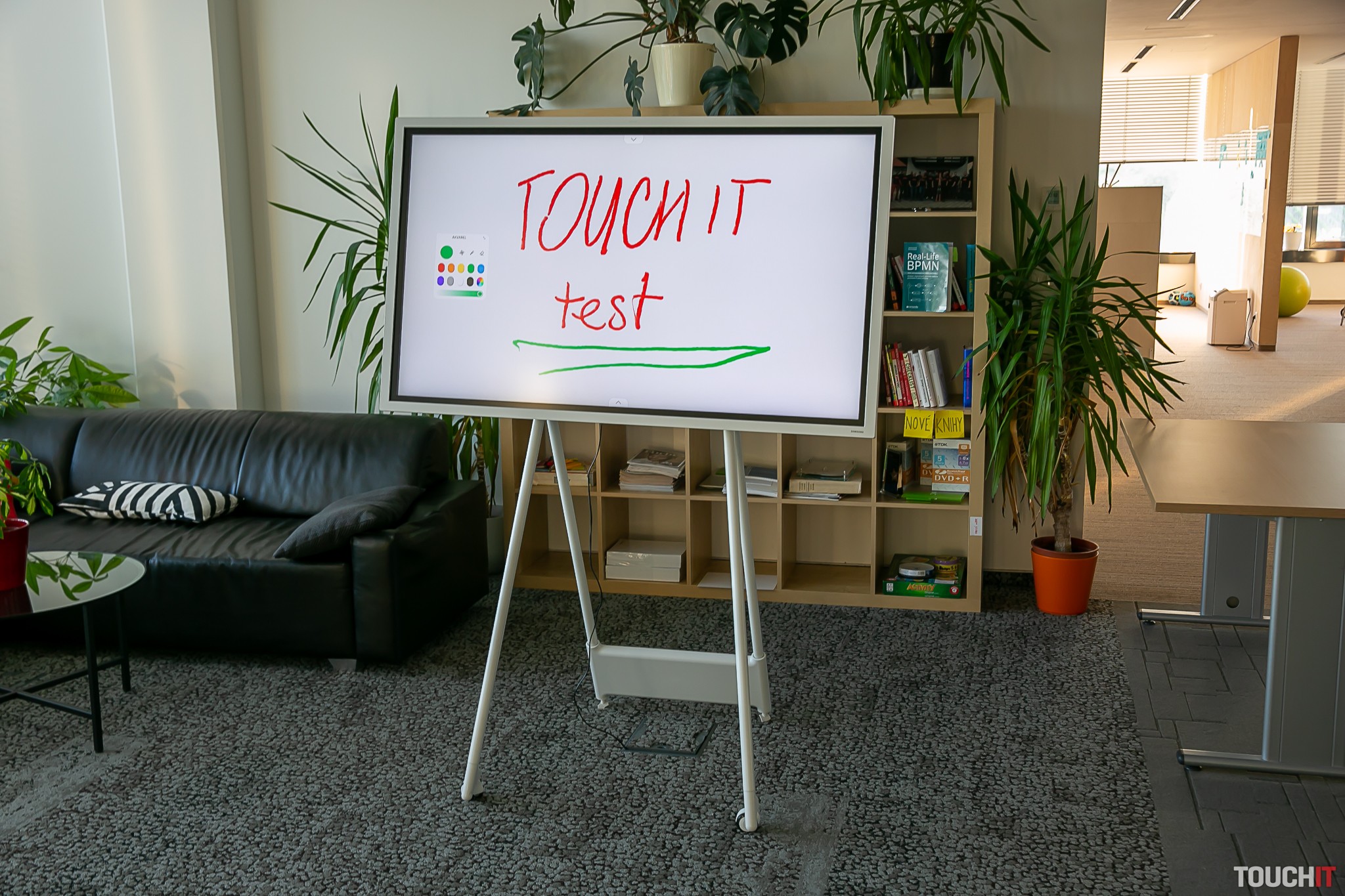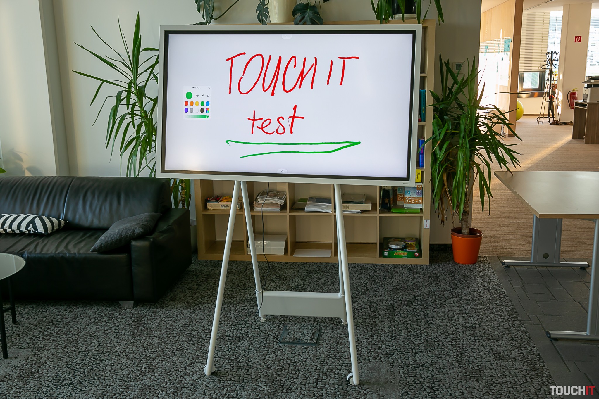 Špecialitou je aj možné otáčanie tohto displeja z horizontálnej do vertikálnej polohy a opačne. Flip2 pritom existuje v 65- a 55-palcovej veľkosti, my sme testovali zariadenie s kódovým označením WM55R. Pri teste sa nám veľmi páčil systém prirodzeného používania, ako keby šlo o školskú tabuľu či papierový flipchart. Veľmi jednoducho sa na Flip2 píše prstom, rovnako sa dajú nákresy ľahko mazať napr. dlaňou. Mazanie je pritom flexibilné – ak chcete, zmažete veci, ktoré vznikli ako poznámky a základnú prezentáciu ponecháte. Ak si však prajete, mažete všetko až do bielej plochy.