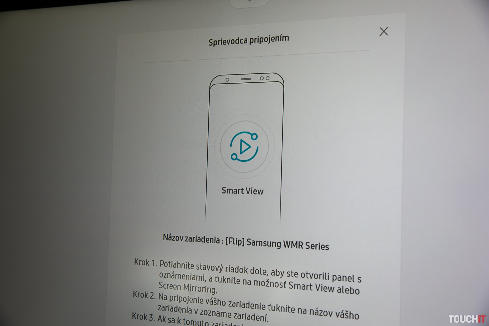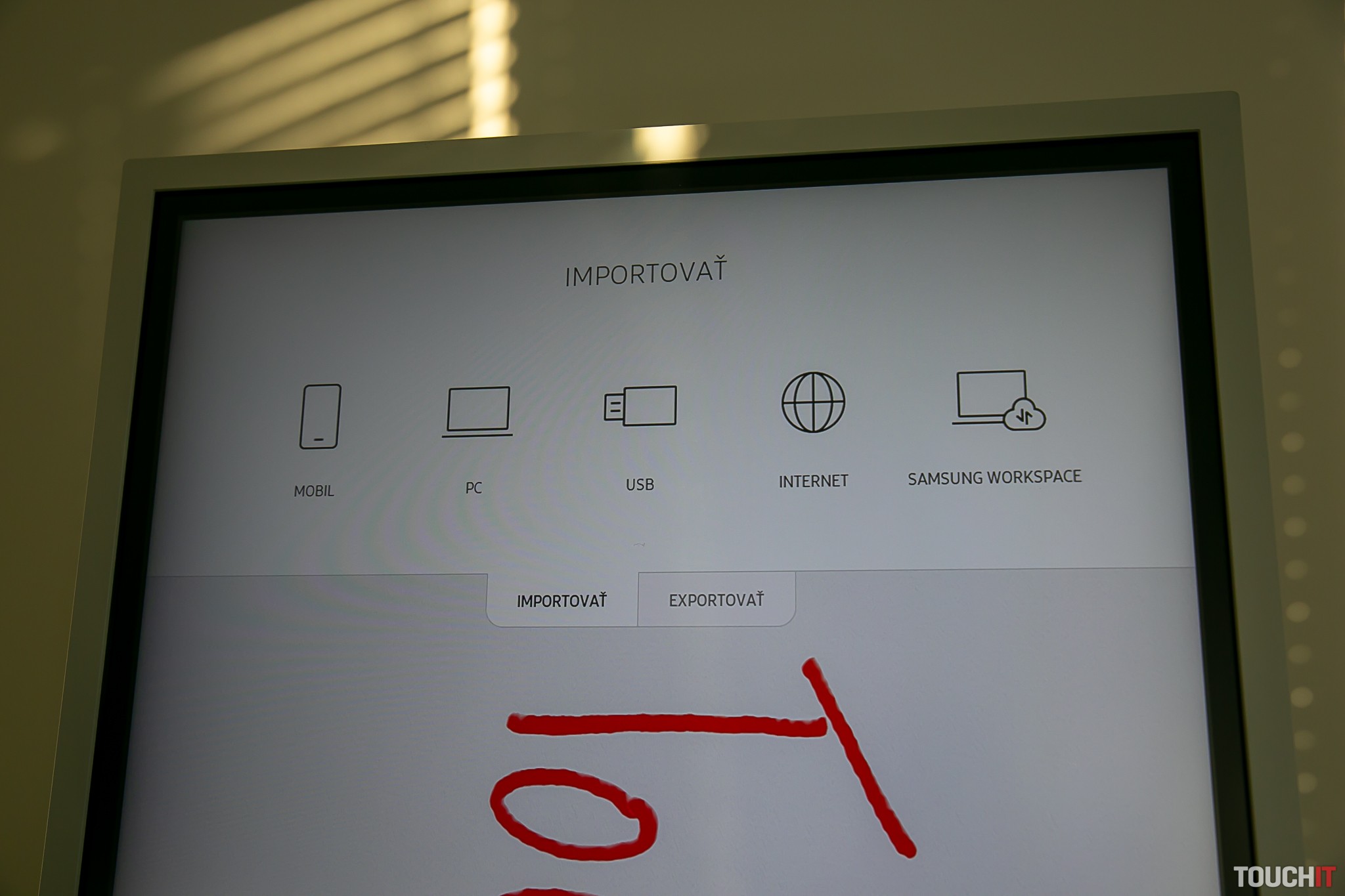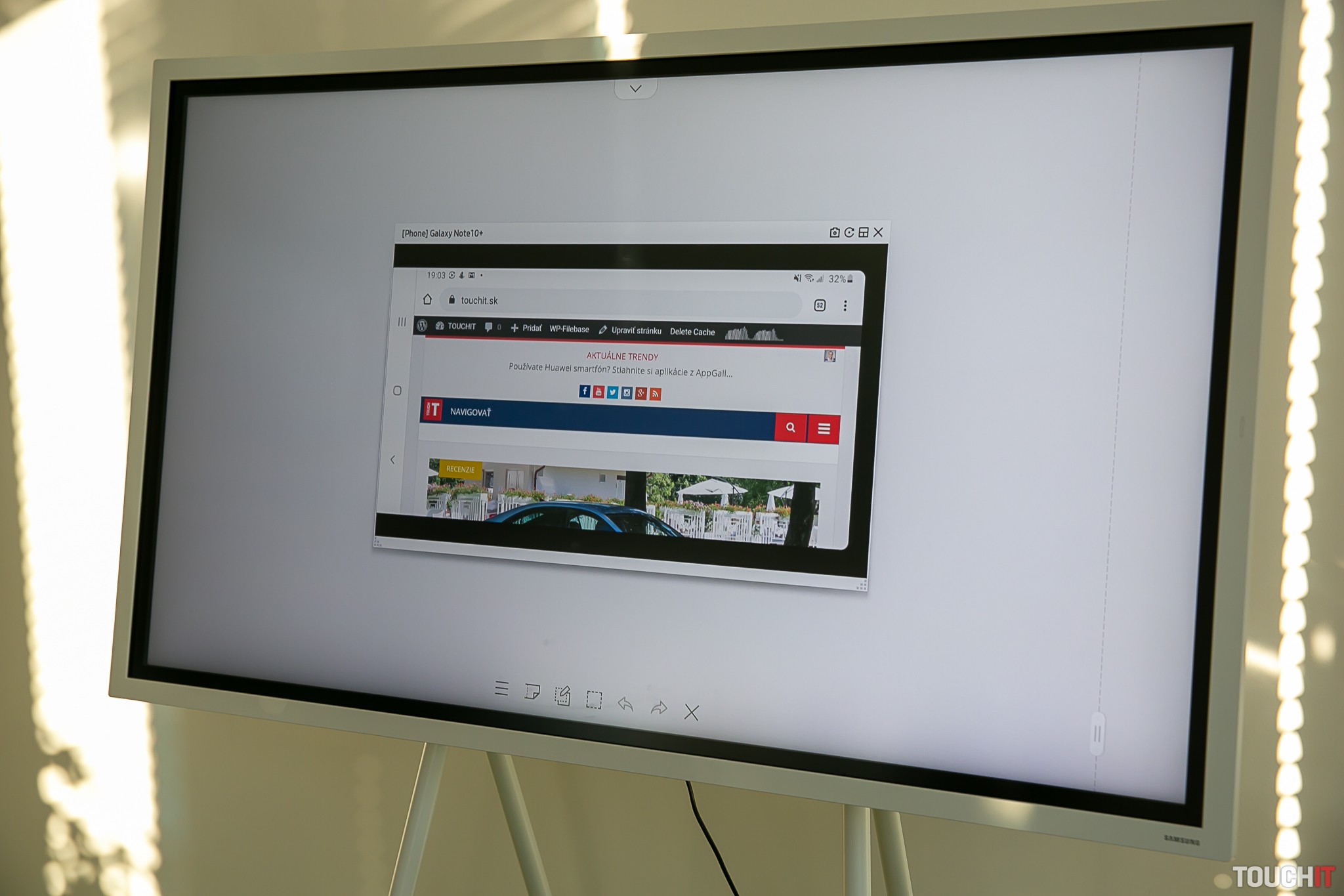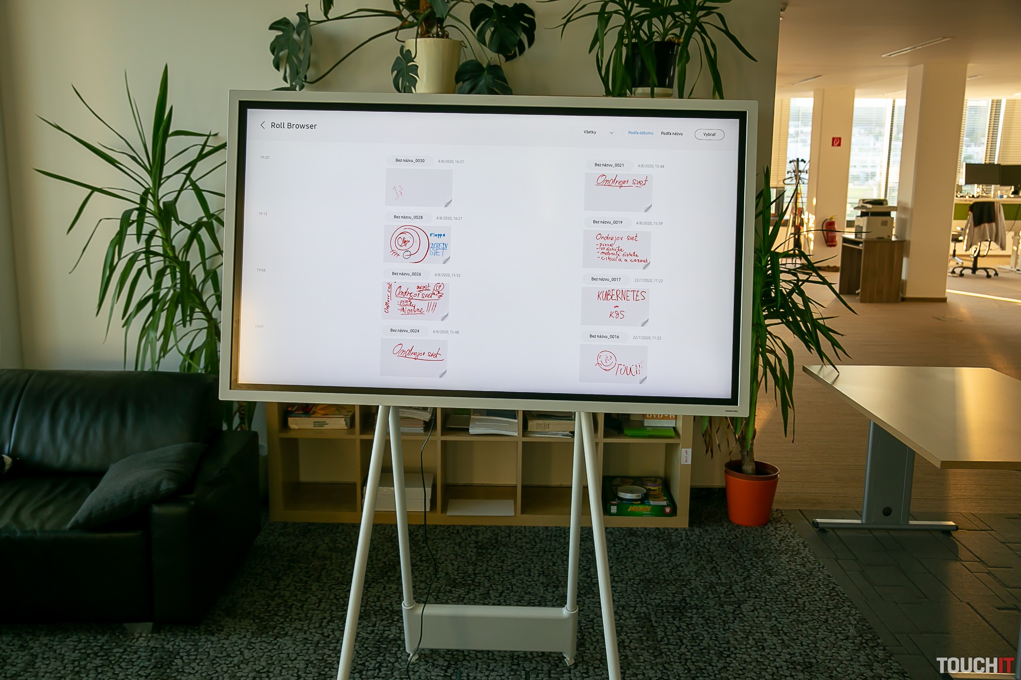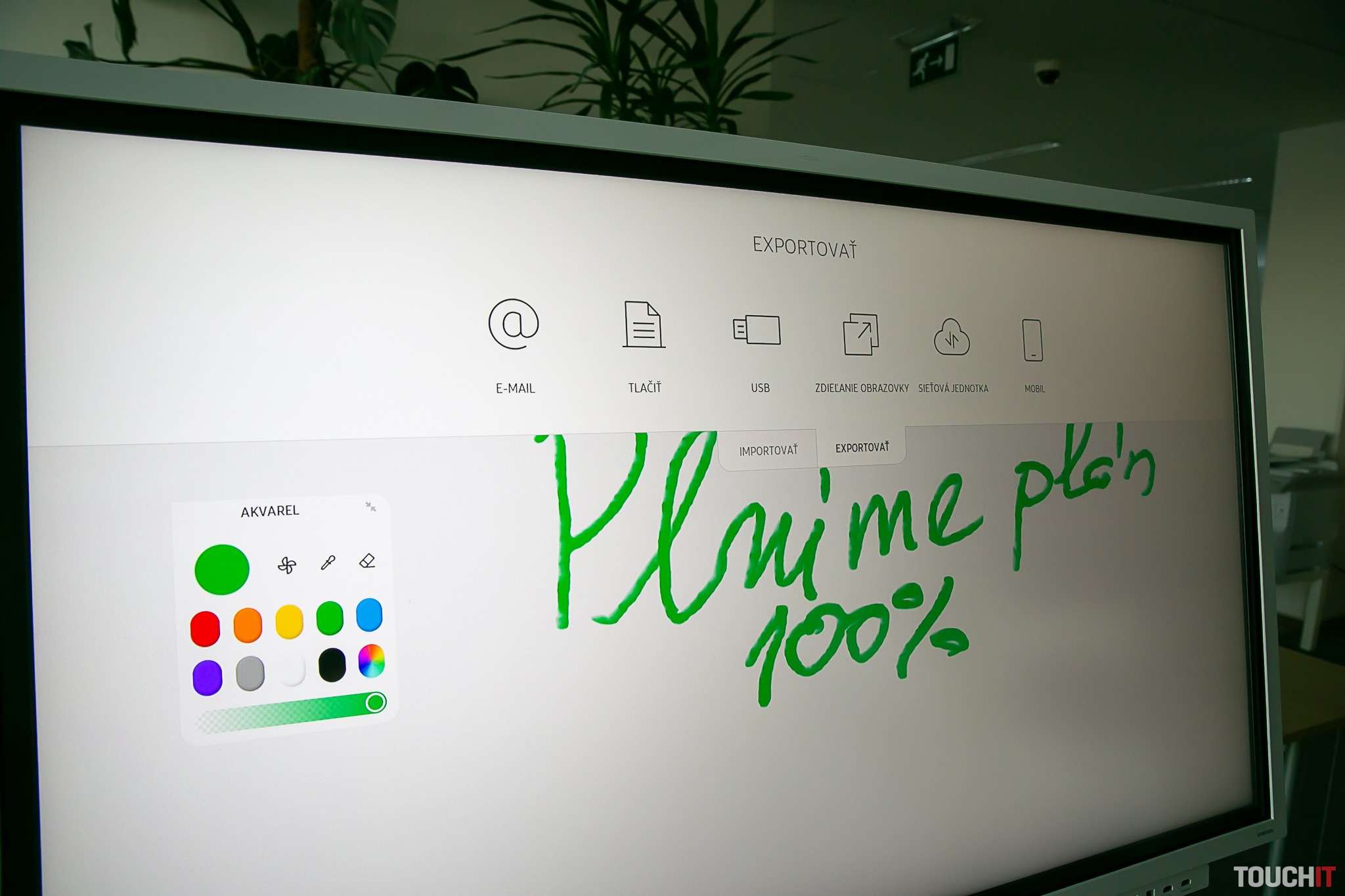 Špecialitou je aj možné otáčanie tohto displeja z horizontálnej do vertikálnej polohy a opačne. Flip2 pritom existuje v 65- a 55-palcovej veľkosti, my sme testovali zariadenie s kódovým označením WM55R. Pri teste sa nám veľmi páčil systém prirodzeného používania, ako keby šlo o školskú tabuľu či papierový flipchart. Veľmi jednoducho sa na Flip2 píše prstom, rovnako sa dajú nákresy ľahko mazať napr. dlaňou. Mazanie je pritom flexibilné – ak chcete, zmažete veci, ktoré vznikli ako poznámky a základnú prezentáciu ponecháte. Ak si však prajete, mažete všetko až do bielej plochy.