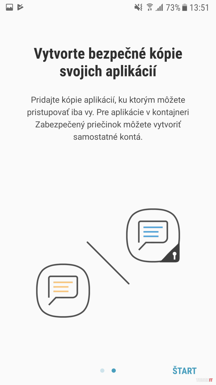 Nové prostredie sa zobrazí automaticky a teraz je ten správny čas urobiť úvodné nastavenie. Pridať môžete aplikácie, ktoré už máte v systéme nainštalované alebo ďalšie z Google Play či obchodu Galay Apps. Ďalej je tu možnosť pridať súbory, ktoré už v smartfóne máte. Ide o fotografie, videá, zvukové súbory, dokumenty alebo ďalší obsah zobrazený cez integrovaného správcu súborov. Všetky takto pridané aplikácie bude treba nastaviť odznova. Je to logické, pretože sú nezávislé na pôvodných a teda úplne oddelené. Môžete sa rozhodnúť či povedzme fotografie do chráneného priestoru skopírujete alebo presuniete.