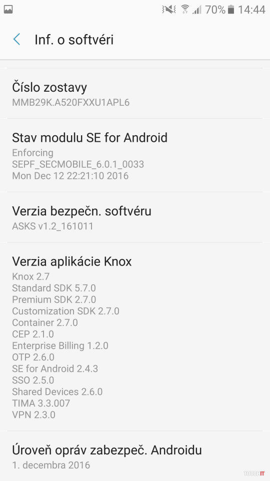 V časti Nastavenia – Informácie o zariadení – Inf. o softvéri sa dozviete aj to, akú verziu systému Knox máte v smartfóne. Odporúčame sledovať aktualizácie vášho smartfónu. Okrem vylepšení systému Android vydáva Samsung aj opravy a vylepšenia tejto bezpečnostnej platformy.